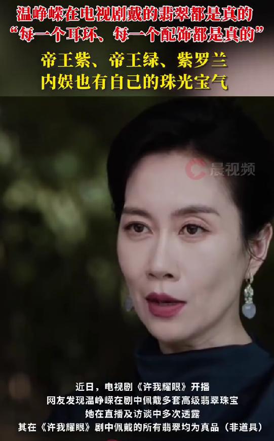 近日,电视剧《许我耀眼》开播,网友发现温峥嵘在剧中佩戴多套高级翡翠珠宝,她在直播及访谈中多次透露:其在《许我耀眼》剧中佩戴的所有翡翠均为真品(非道具)。