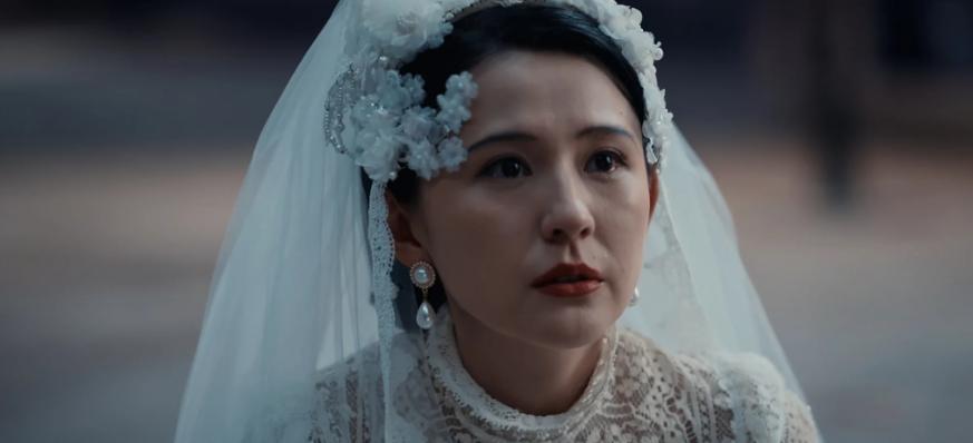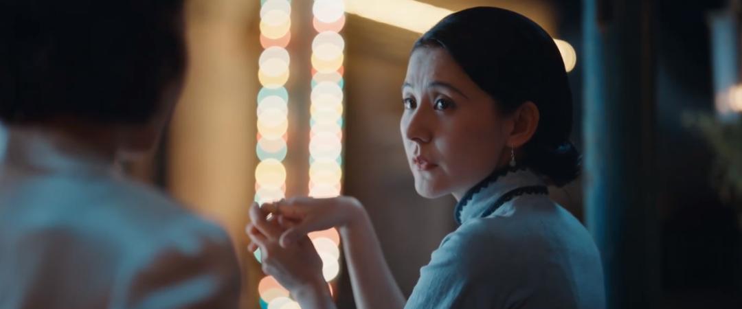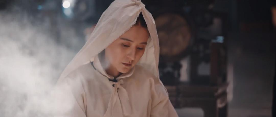她穿着新买的旗袍,脸上洋溢着对未来的憧憬,却突然听到丈夫去世的消息。