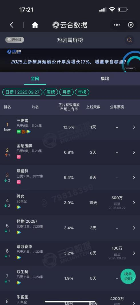 9月26日,古装网剧《金昭玉醉》在哔哩哔哩平台正式上线,引发观众热议并收获如潮好评。该剧由欢娱影视导演喜子执导,欢娱影视创始人、总经理杨乐担任出品人,浙江娱丸影视文化有限公司发行。陕西嘉言盛典影业、浙江娱丸影视、北京洲际兄弟影视、象山俱欢颜影视出品,哔哩哔哩联合出品。欢娱影视演员白川、弭金、张婉莹主演。《金昭玉醉》上线仅三天,已经以9.2分的好成绩登上b站电视剧榜单第一名,总播放量超1000万。根据云合数据显示,该剧播出第二天,正片有效播放市场占有率为6.8%,登上短剧霸屏榜第二位。