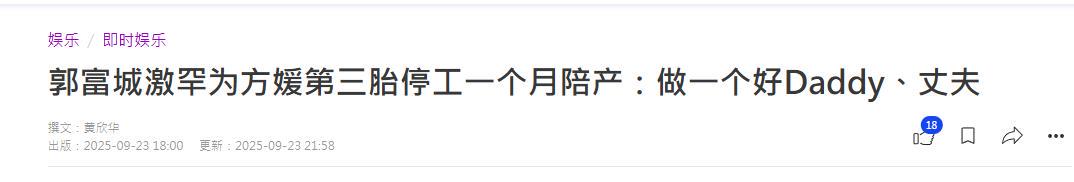 翻看网友评论可知,目前,大家对郭富城方媛喜获三胎的消息,都是恭喜。