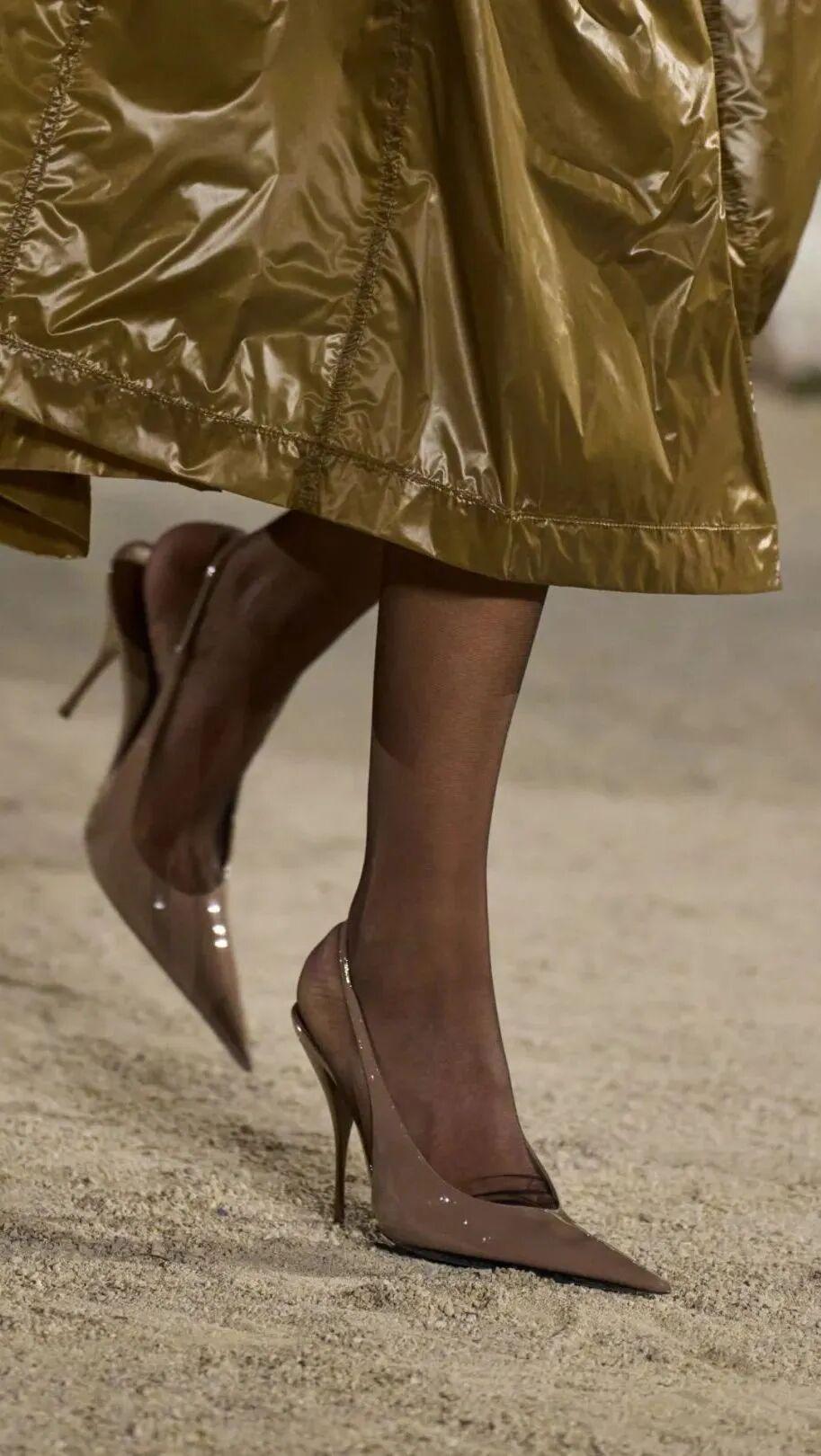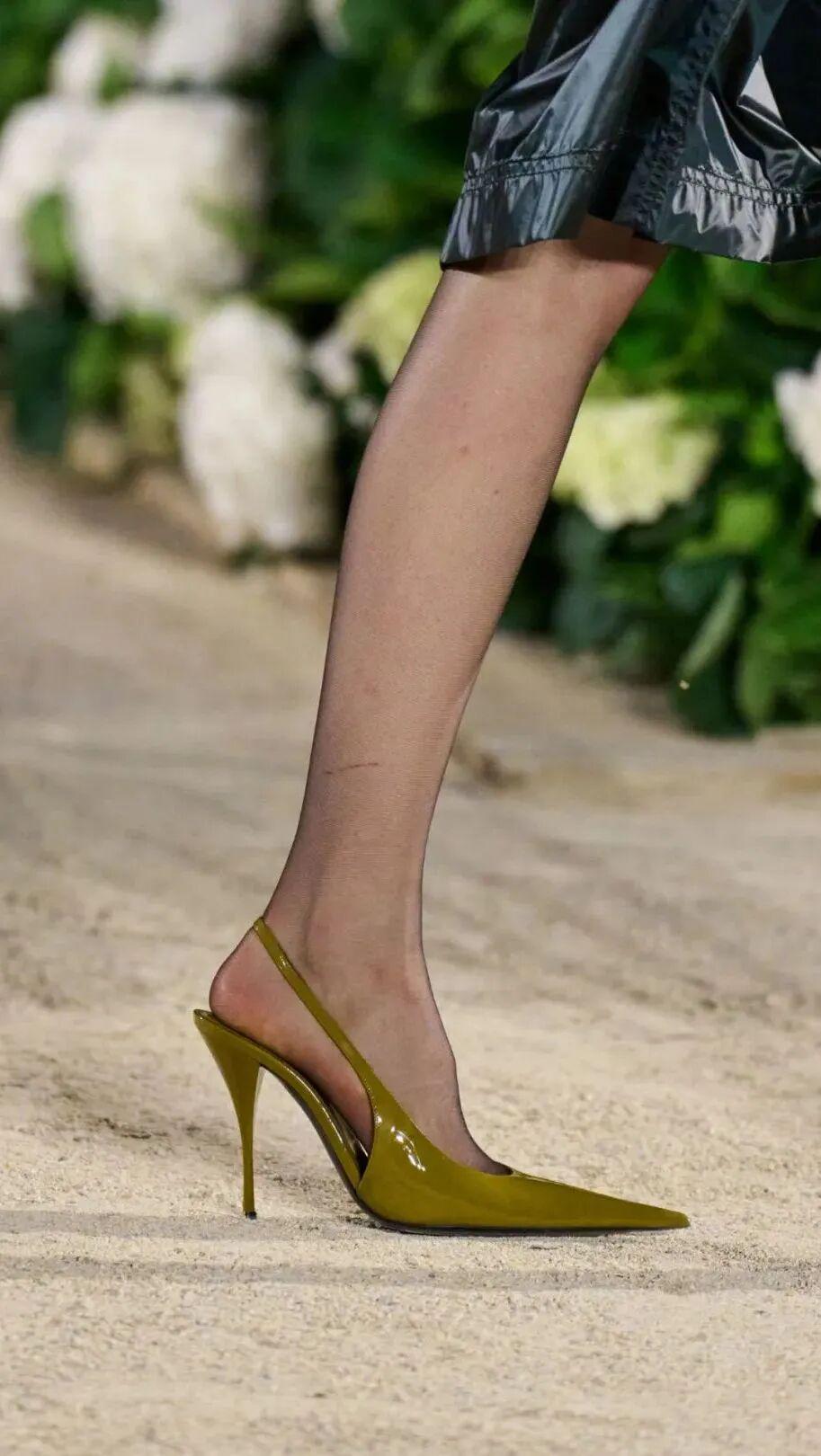 “美丽刑具”再次更新,高跟鞋极其纤细的鞋跟与尖头,以各色漆皮材质呈现,为造型增添性感魅力。