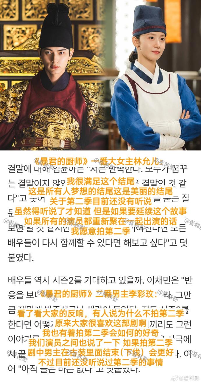 偷中餐文化,且丑化明朝的韩剧《暴君的主厨》在播完之后,女主林允儿和男主李彩玟先后表态,直言自己还想拍第二季,这可以说让那些为他们洗白的中国粉丝彻底成为了笑话,这部剧到底有多么的离谱,就这么说吧,人民文娱和环球网都非常罕见地对该剧进行点名批评,说该剧篡改历史事实,抄袭文化,但两位主角却不以为耻反以为荣。
