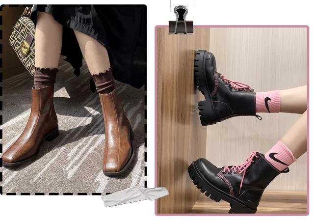 中筒袜搭配短靴格外时髦