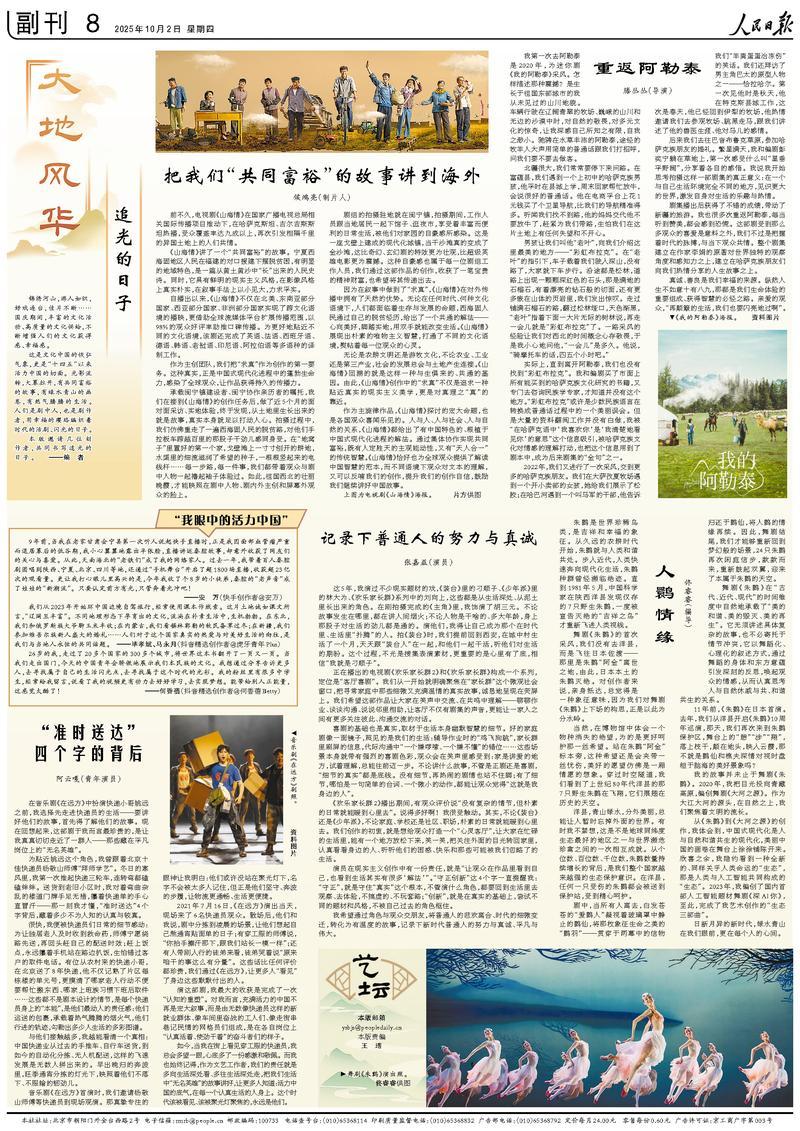 如今,当我在街上看见穿工服的快递员,我总会多望一眼,心底多了一份感激和敬佩。而我也始终记得,作为文艺工作者,我们的责任就是多向生活深处看、多往生活深处走,把我们生活中“无名英雄”的故事讲好,让更多人知道:活力中国的底气,在每一个认真生活的人身上。这个时代该被看见、该被聚光灯聚焦的,永远是他们。
