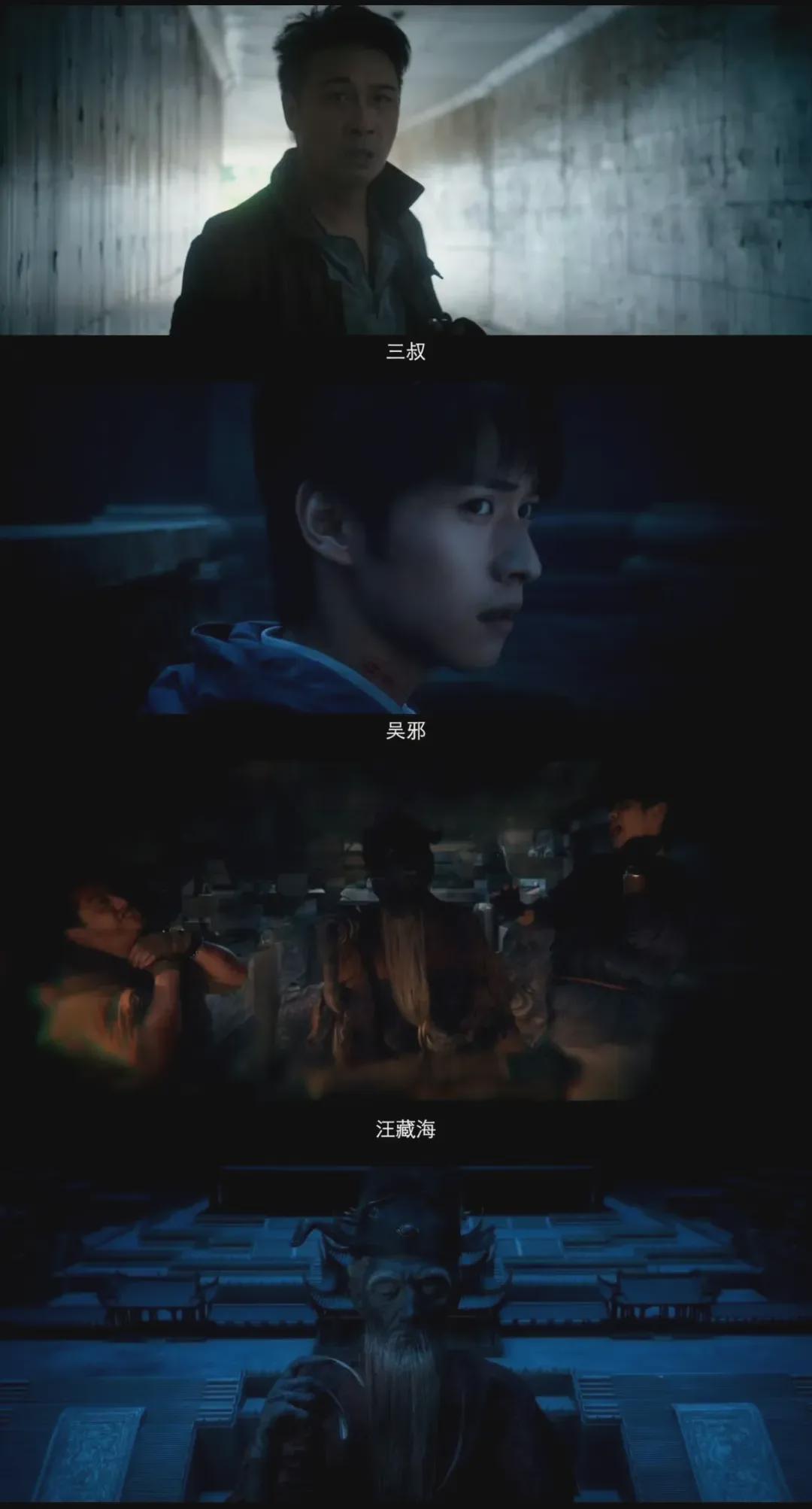 张起灵和吴邪深入陵墓发现和吴三省说的不同,解连环没死,三叔和他共用身份。铁三角还在顶端看到化成干尸的汪臧海,还看到了精明的壁画。张起灵一直护着吴邪和胖子,更有贴脸开大从汪藏海体内取炸药炸船,就像一场跨越时空的斗法。你留下的怪物我来清理,怎么不算做一道留了这么久的考题?