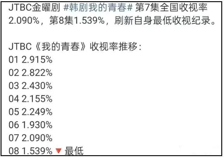 尽管话题度拉满,但《我的青春》收视率仅1.5%,堪称扑穿地心。