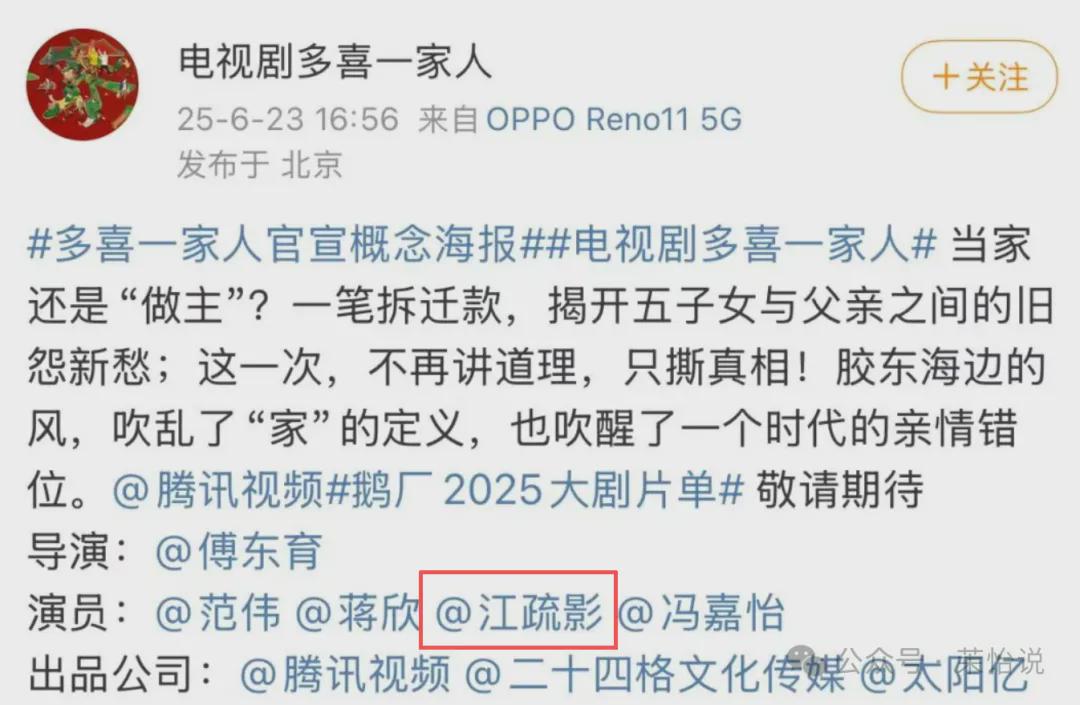 在今年6月,另一部《多喜一家人》也官宣了演员阵容。