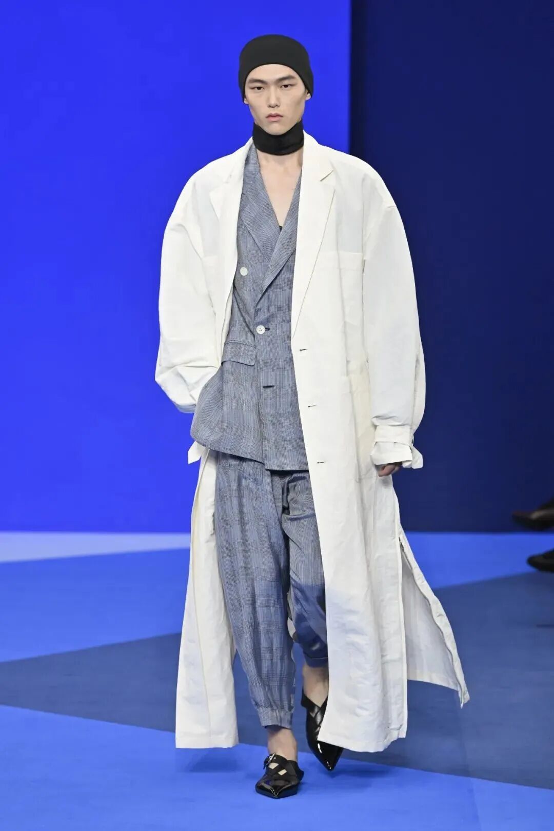 国内设计师RUOHAN本季以“须臾与节奏”为题,透过动作、色彩与韵律,唤醒被储藏的瞬间。蜡涂铜氨丝、透明棉纱、涂层亚麻,映照夏日光影;色彩如长调蓝天,从午后至黄昏。呈现了一首关于须臾与永恒的夏日乐章。
