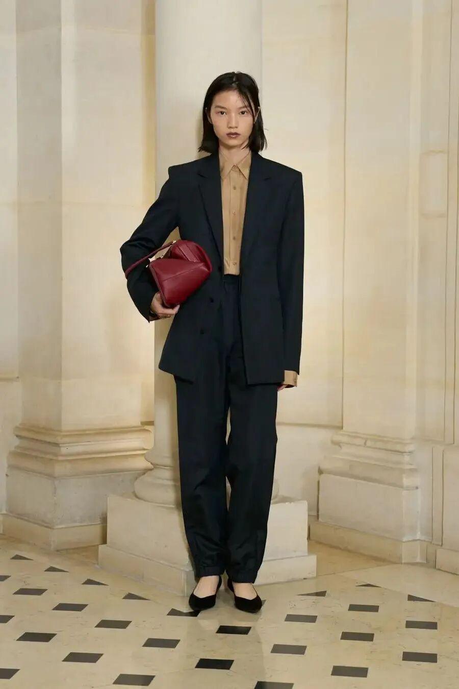 品牌大使马思纯,身着2025秋冬女装系列搭配Camero手袋,前往巴黎秀场,红蓝配色对撞,优雅耐看。