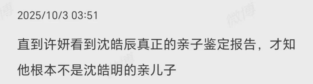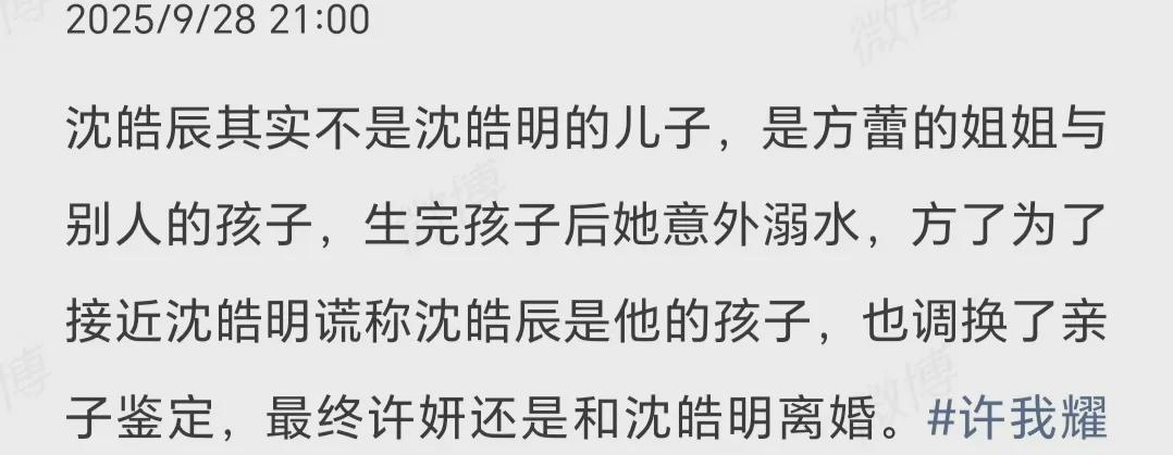 《许我耀眼》开播后,观众中就一直有一种说法,那就是沈皓辰根本就不是沈皓明的儿子,他是方妤和别的男人的孩子。