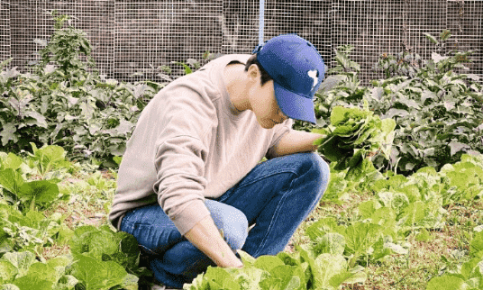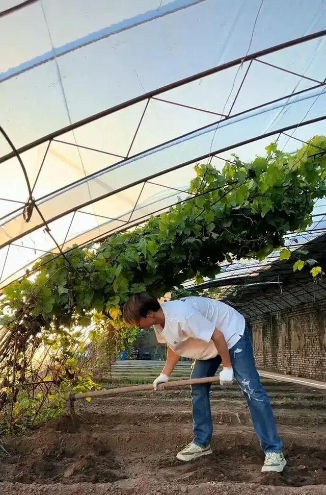 农场平常主要是叔叔照顾,马天宇不开工的时候就来亲自干活,清俊少年出走半生,39岁归来成老农。