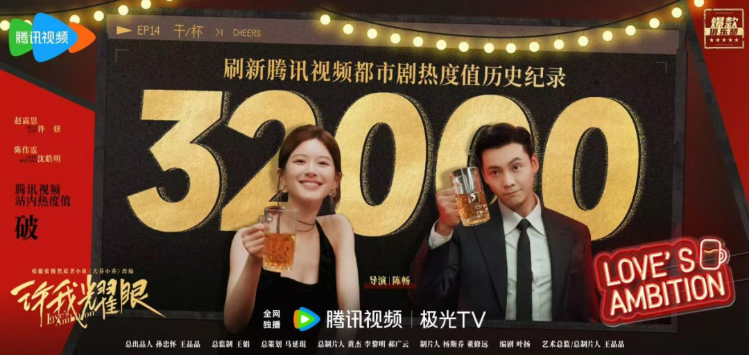 改编自知名作家张悦然小说《大乔小乔》的《许我耀眼》,自上线起就以“断层领跑”的姿态惊艳市场。不仅连续多日稳稳占据骨朵网剧榜榜首以及其他平台榜单第一,腾讯视频站内热度也仅用4天就突破了30000,目前最高峰值已达32197,打破了都市剧热度值历史纪录,成为2025年最快进入爆款俱乐部的剧集。