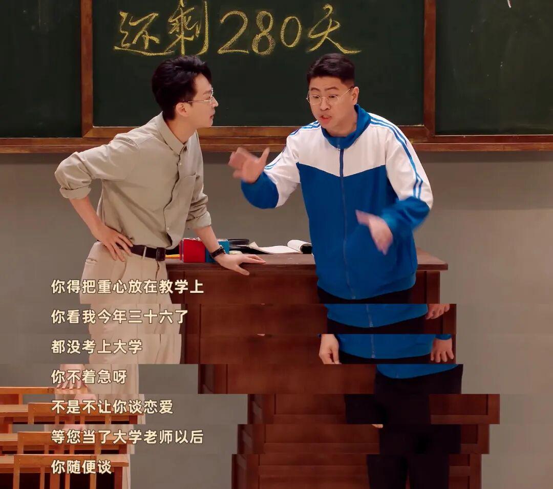 这周的《开学第一天》则是疯得好有逻辑还挺励志。杨雨光演了一个“超龄高三学生”,一露面就有一种腌入味的“中年感”,还加入了某种戏曲亮相一样的范式,放在这个作品里效果拔群。