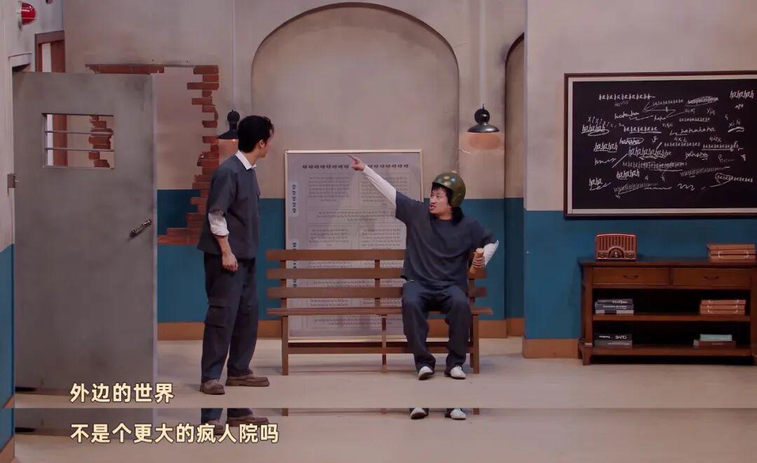 但是细心的观众会发现剧情一直在暗示,这个修理工说要赶紧出去帮助军队战胜“同盟军”。直到最后真正的“疯子”汉斯堡身份揭示为核物理学家,而他不愿意出去面对那个战争的世界,所以选择在疯人院里当疯子。哇这作品立刻上升到了另一个高度。