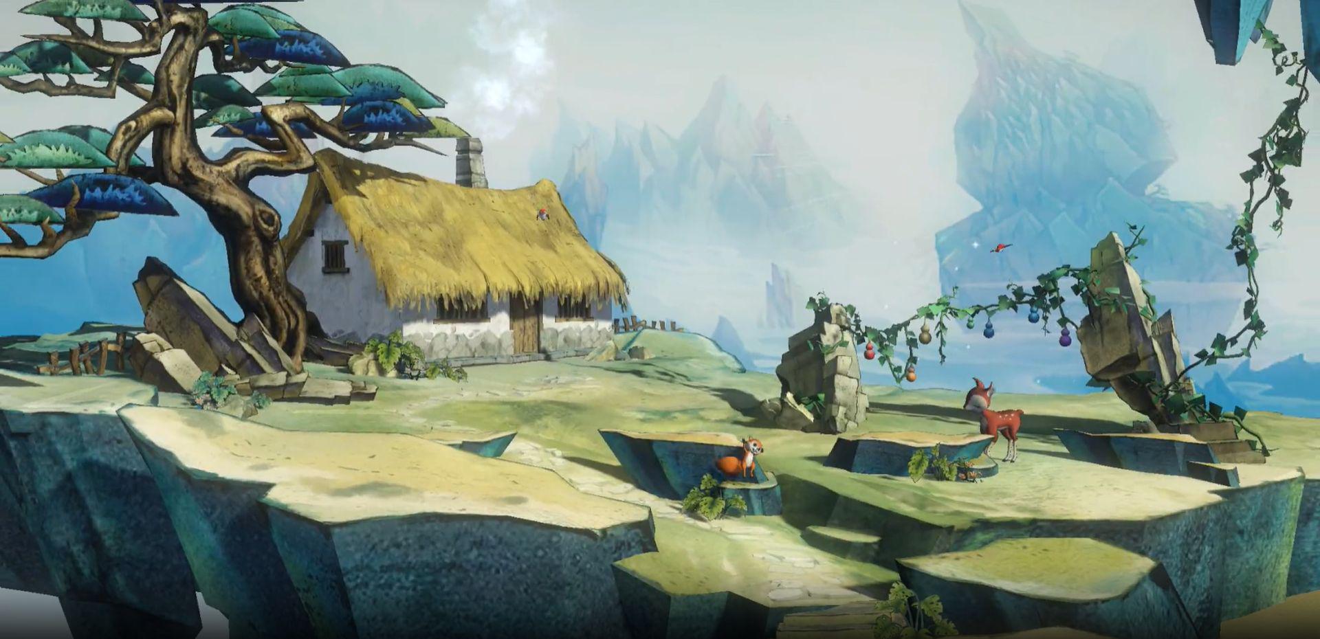 而爷爷的家则是另一番景象,朴实温暖的色调,茅草屋、空旷院落,藤上葫芦随风轻晃,满满都是中国山水画的意境。走在这样的场景里,感觉自己不是在玩游戏,而是真的闯进了动画片里!