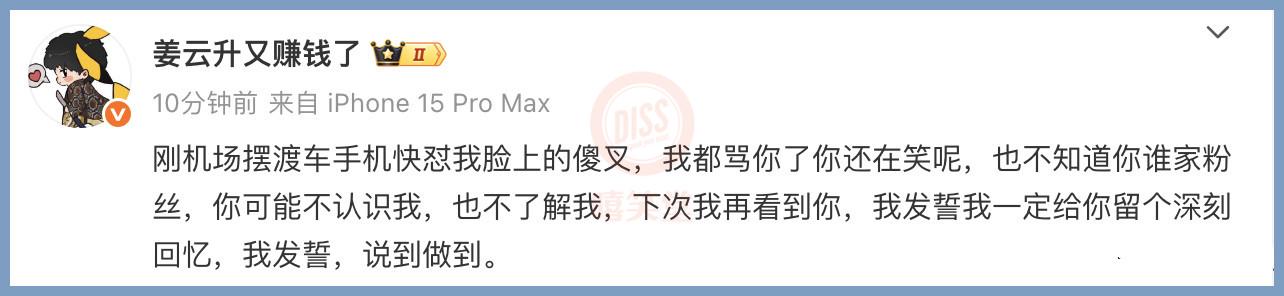 原来,姜云升在机场居然遇到了恶意的代拍行为。