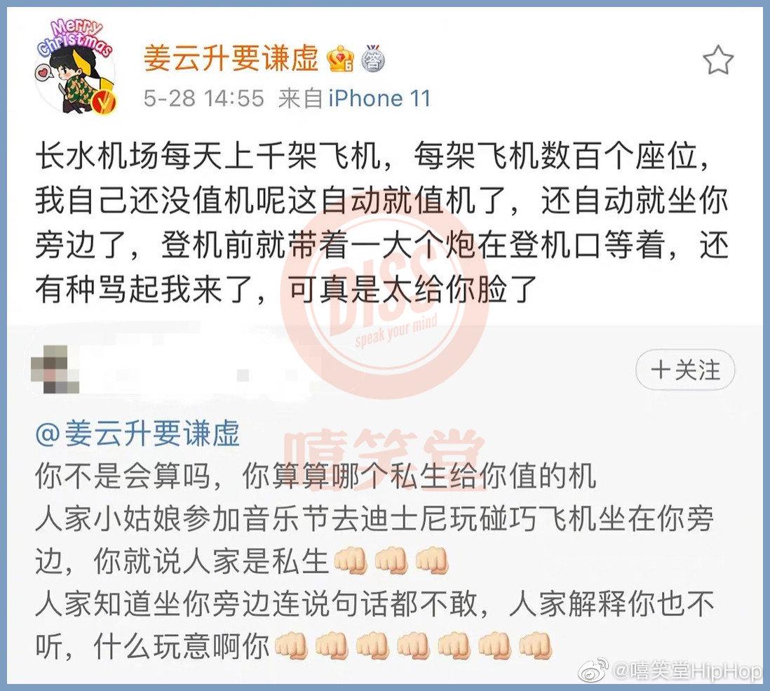 他之前遇到过一位私生粉,而这位简直太离谱,不但买了姜云升一趟的航班,还给姜云升值机到了她旁边的座位。