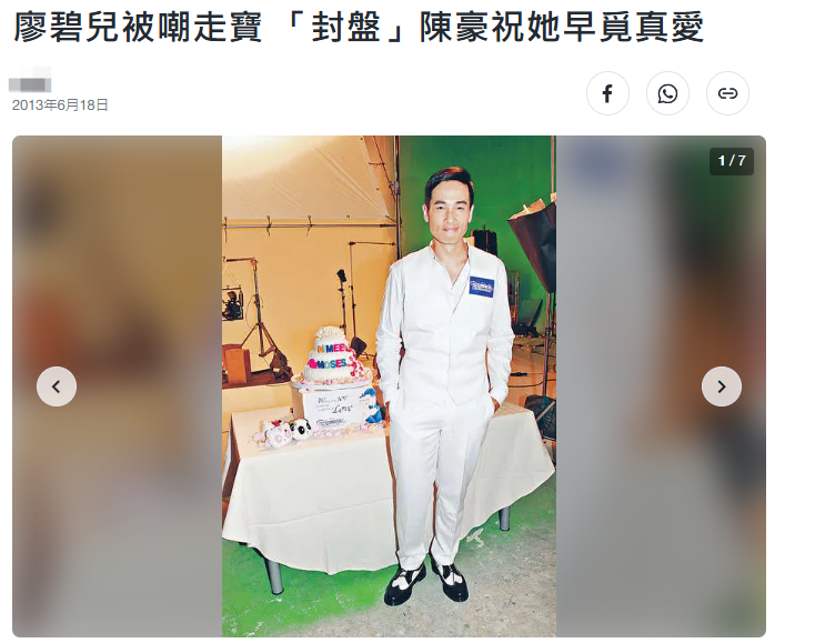 到了2011年,陈豪拍《心战》邂逅陈茵媺,才开始新恋情,2013年俩人奉子成婚,港媒嘲廖碧儿“走宝”,陈豪还很大方地祝她早日觅真爱。