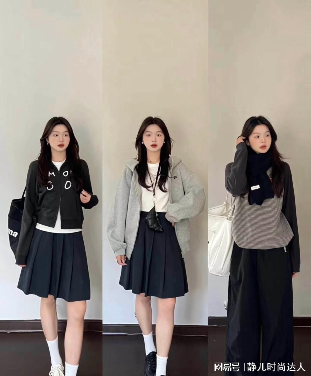 除了衬衫之外,不少女性在秋季也会以卫衣为主,而卫衣其实有拉链的款式和套头的款式的区分。