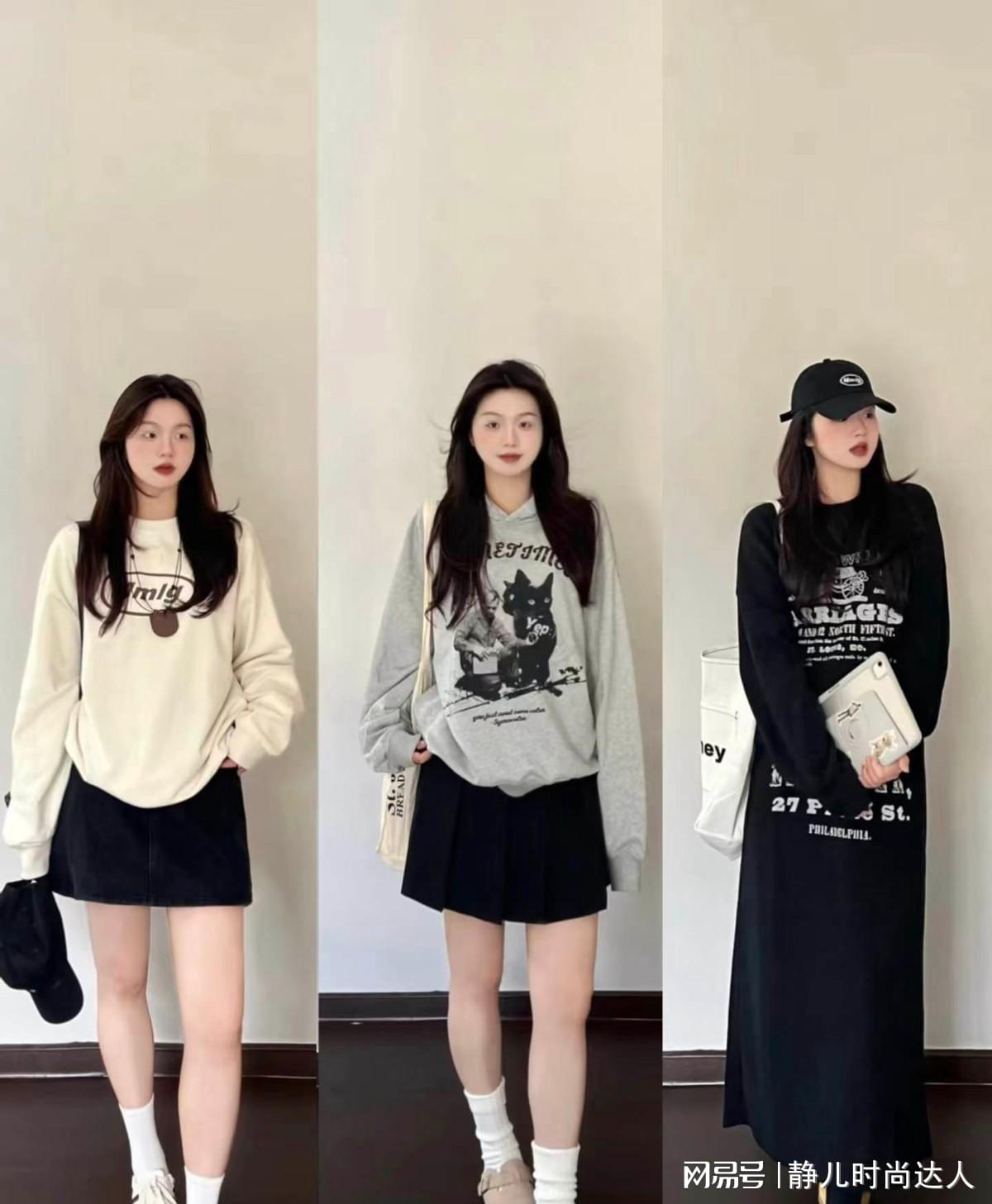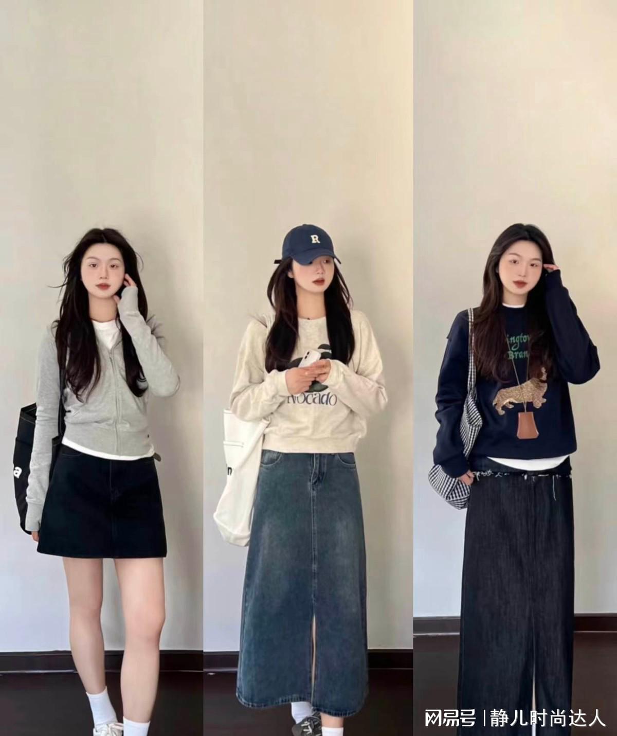 如果希望塑造出很极致的减龄的效果,可以采用卫衣和牛仔半身裙的搭配,卫衣体现出休闲的风格,穿起来舒适又没有约束感。牛仔裙展现出很青春的气息,也能对腿型进行简单的修饰。