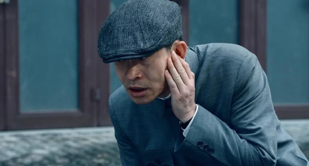 他把谷正文的狠辣演得不动声色。手下在楼上枪战,死了人,他还能在楼下带着诡异的笑容吃面,仿佛这一切只是个游戏。