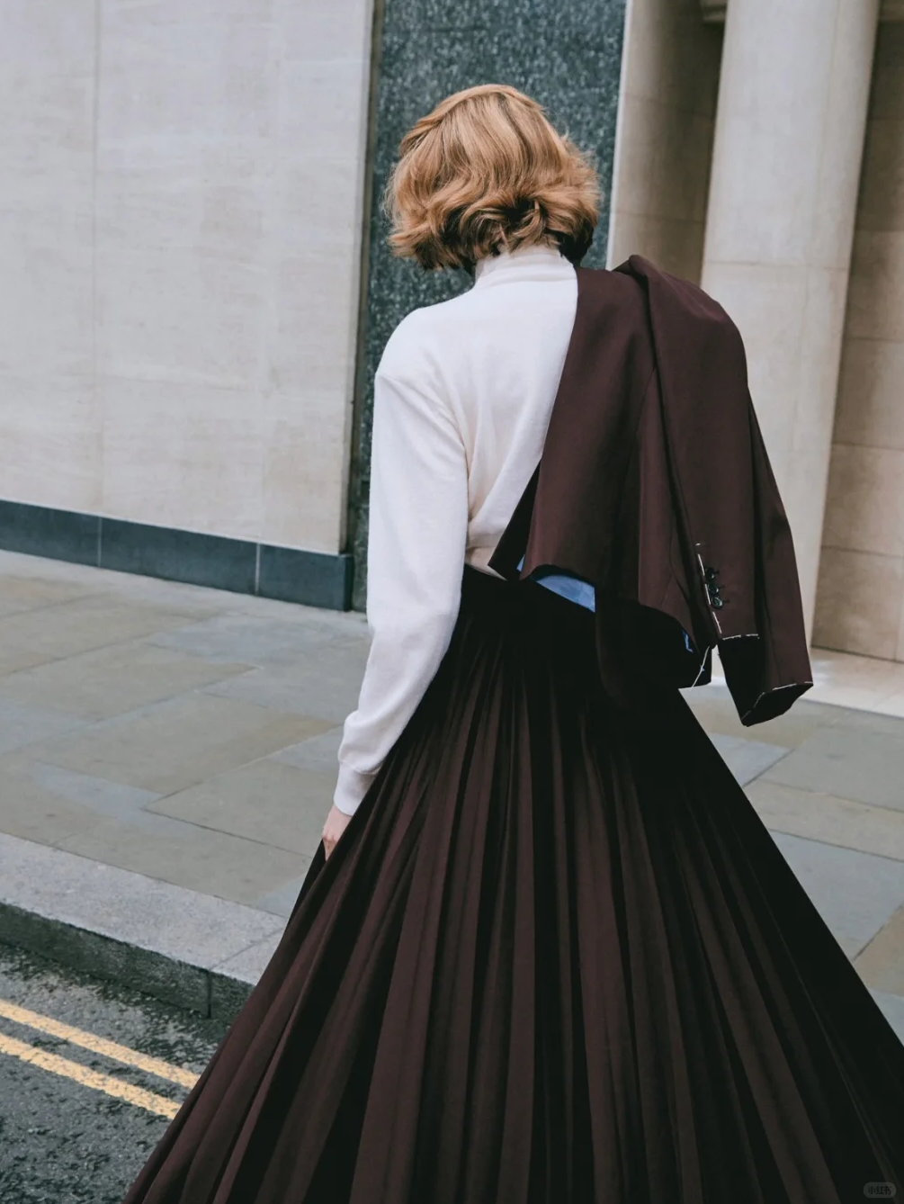 西装配百褶裙,也很有讲究。