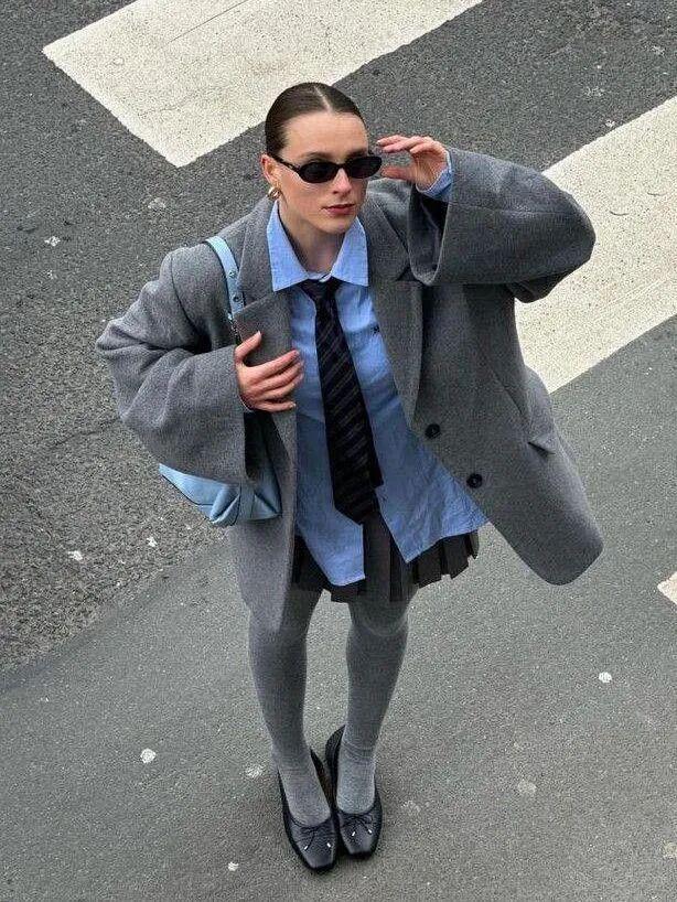 西装+百褶裙