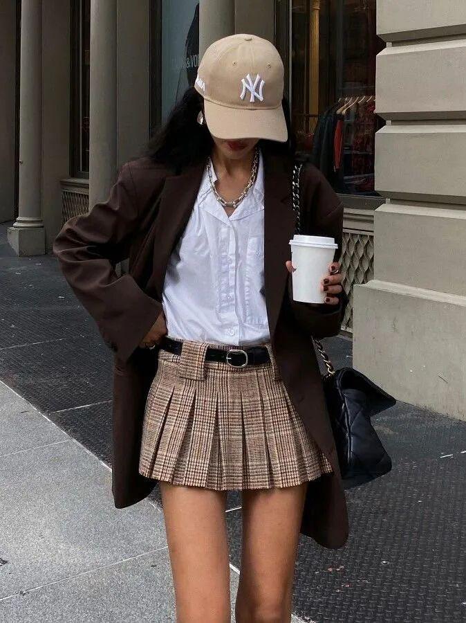 西装+格纹半裙