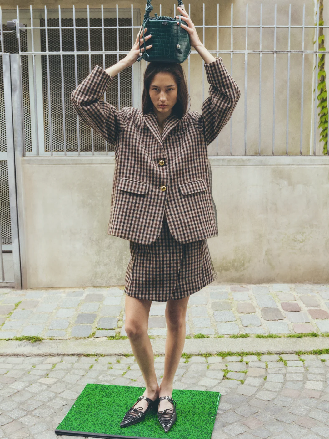 极具复古氛围的格纹半裙,与素色的西装外套,构成秋冬最独特吸睛的look,保留着恰到好处的文艺气质。