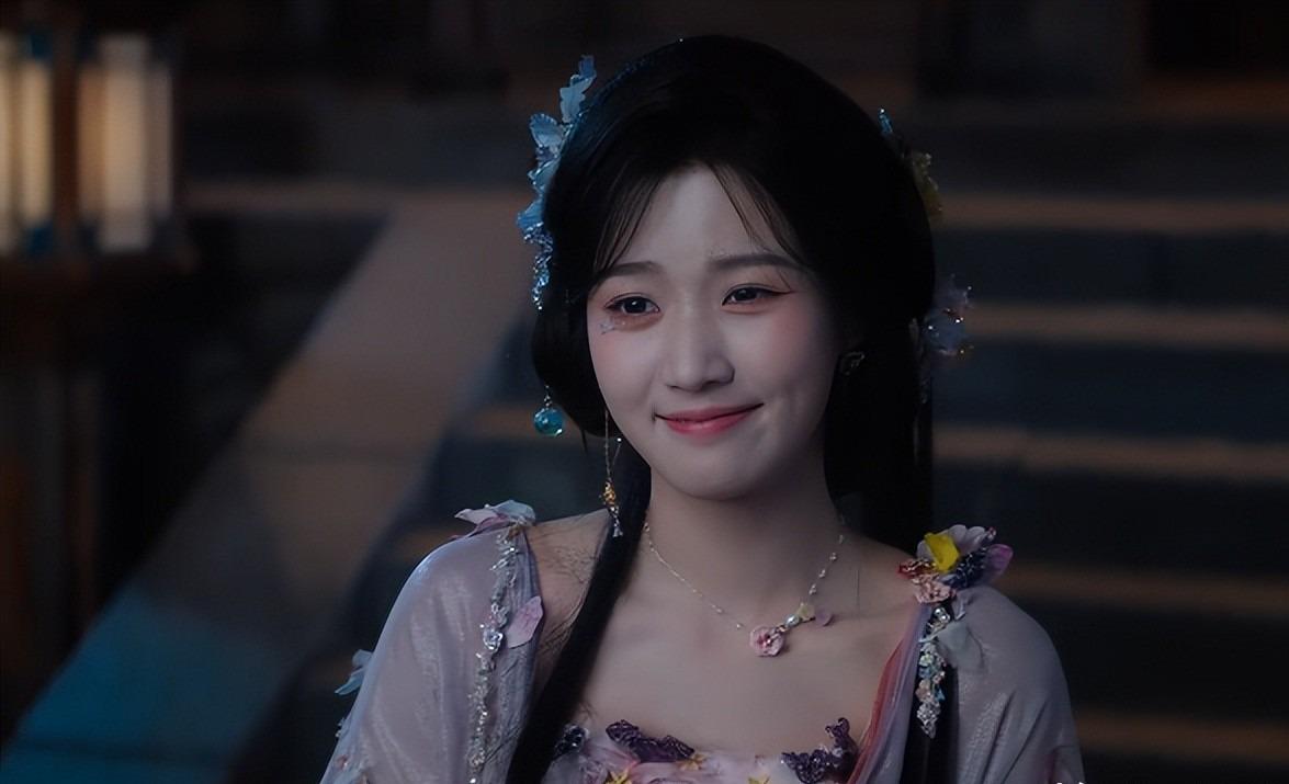 换回女装打扮之后,又有了额头的刘海遮挡,卢昱晓的精致妆造,比当男生时适配了不少。