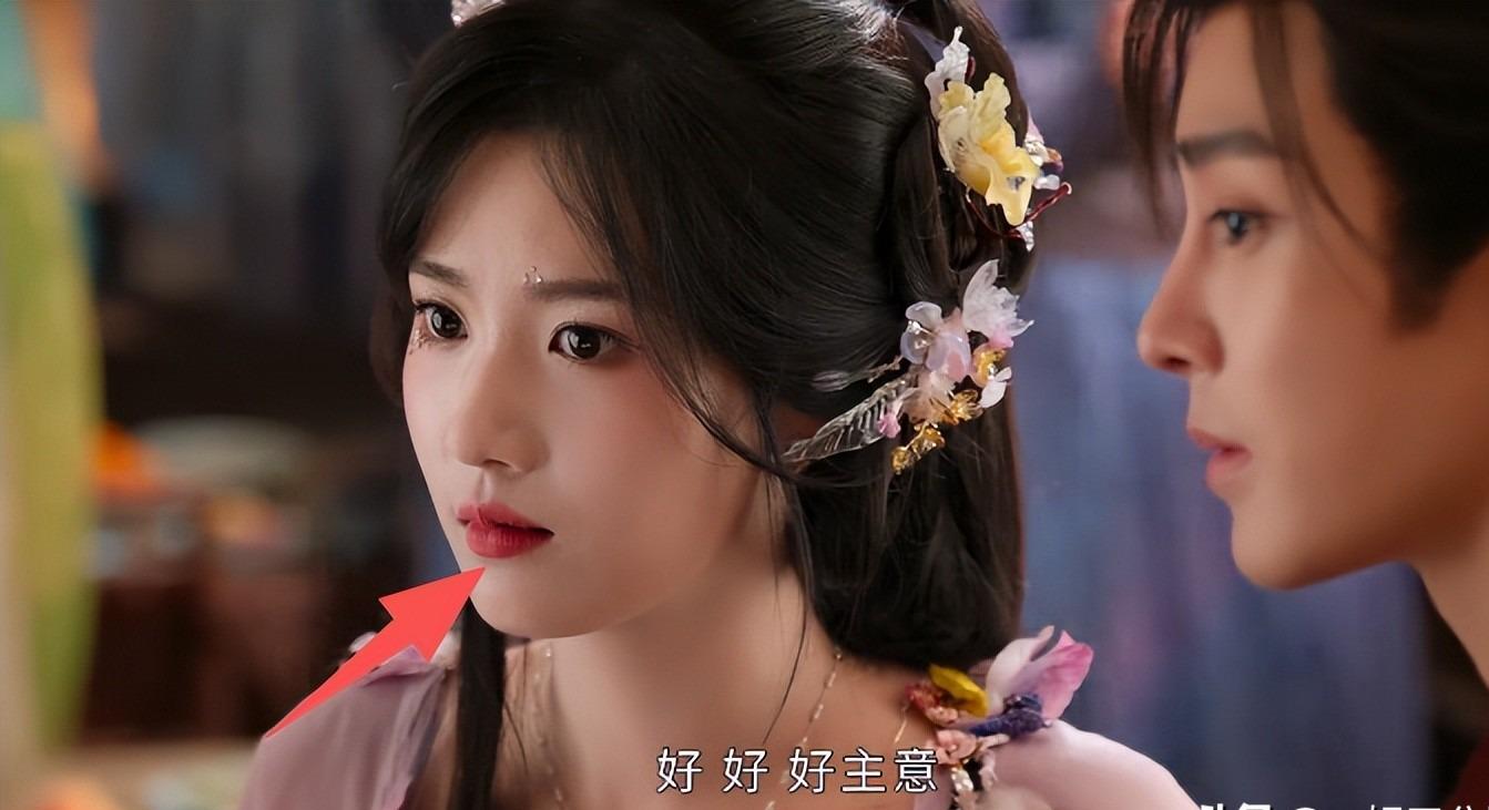 明明是男主对着她的耳朵说话,感觉都要暧昧拉满了,偏偏她厚厚的肉抢镜了,氛围感一下没了。