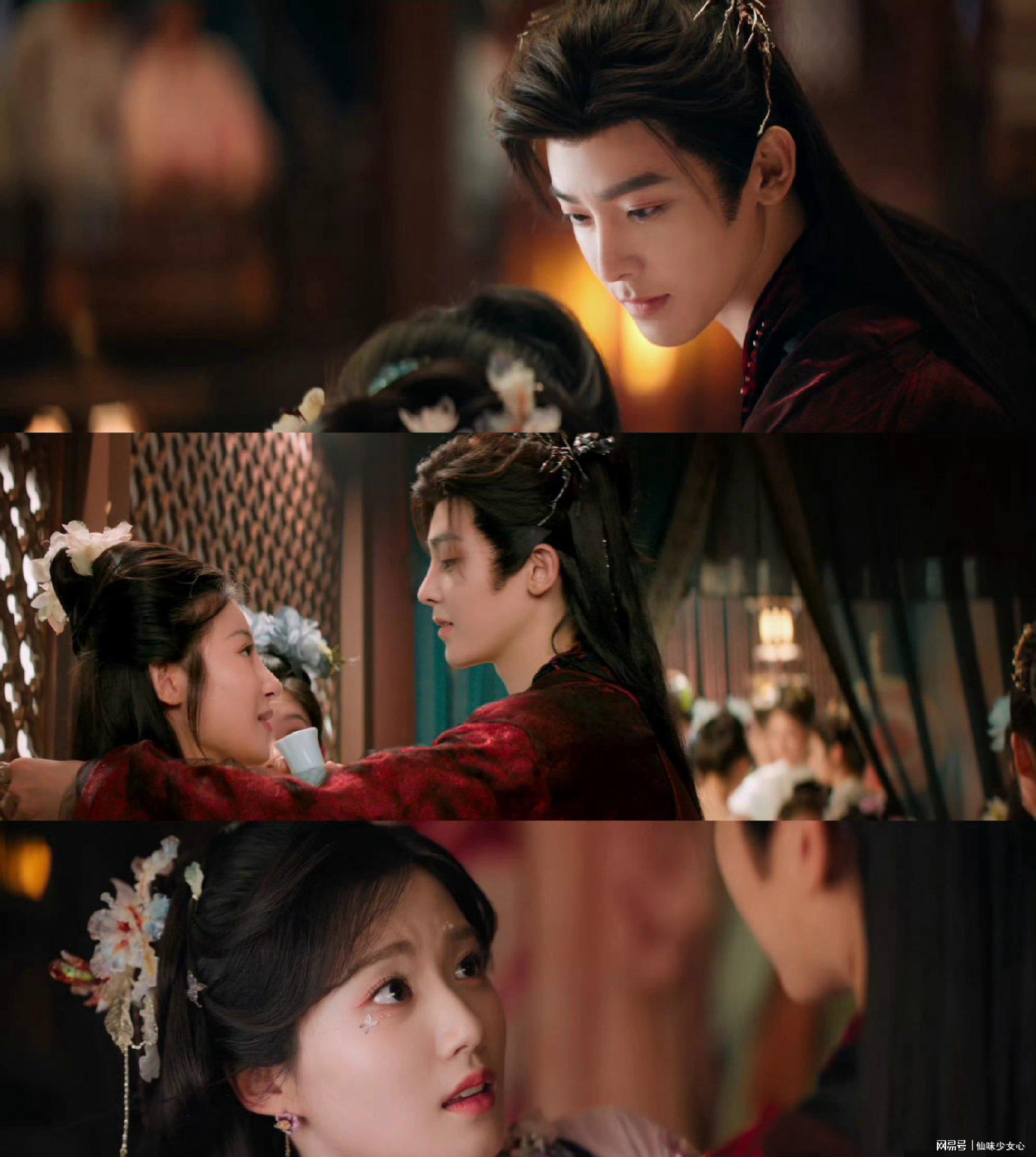 这种双强“互骗互撩”设定被称“仙侠版史密斯夫妇”,醉酒对峙、红绸吻戏等暧昧片段性张力让人看的脸红心跳,宿命感爆棚。