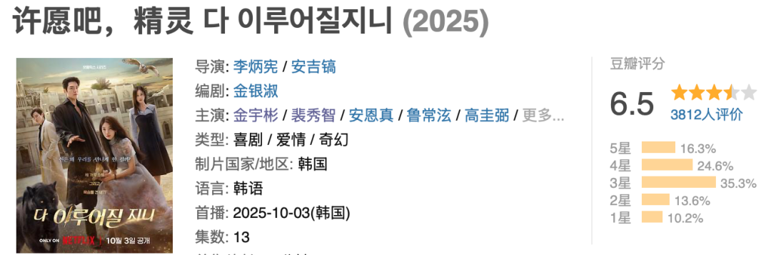 但可惜的是,这个剧本实在难评,目前豆瓣仅有6.5分。