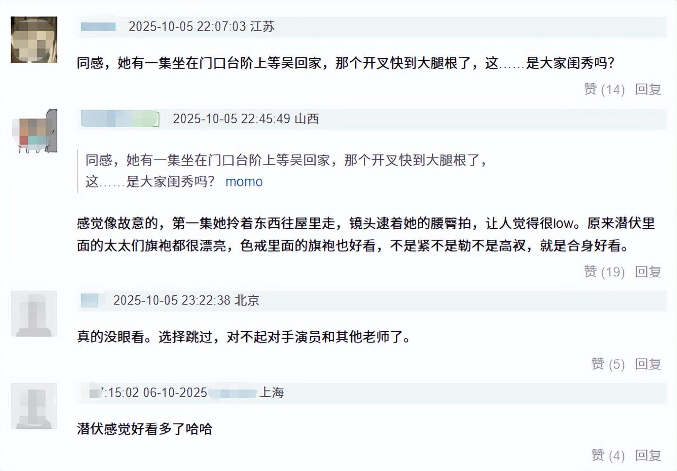 只要曾黎一坐下,就会露出裙子里面的打底裤,实在谈不上优雅,更不像是大家闺秀应该有的样子。