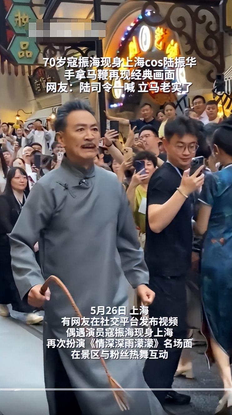 70多岁的“陆振华”在景区念着经典台词,下一秒却戴上墨镜跳起热舞。