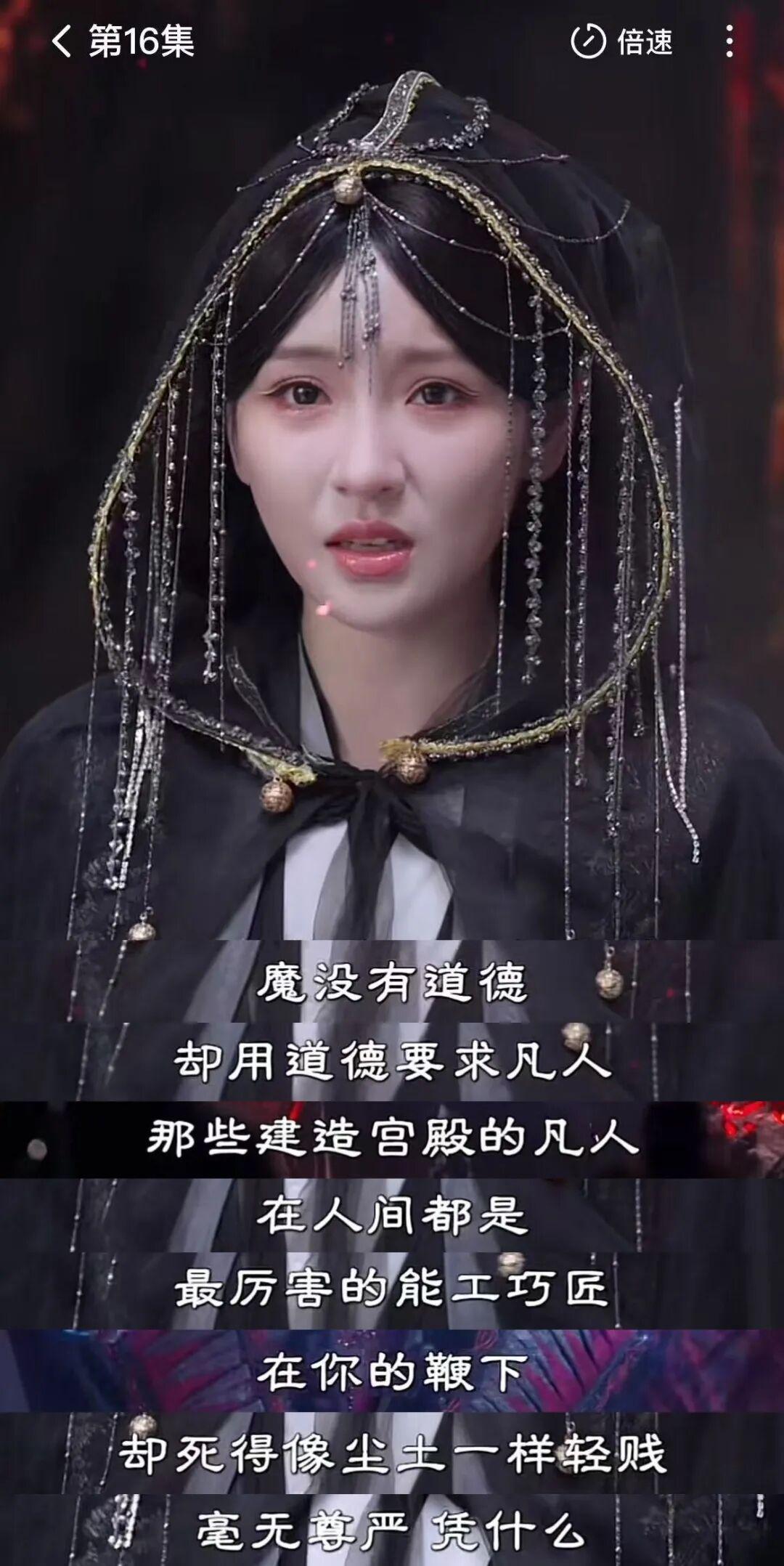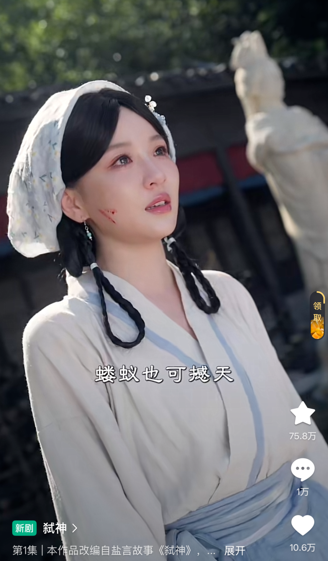 当第一集女主对放过屠村魔神的神女质问“为什么你们神魔爱恨情仇,死的却是我们凡人时,当杨荣荣说出“那我非要证明,蝼蚁也可憾天,凡人亦可弑神”时,听花岛新短剧《弑神》的“人本位”故事就成立了。没有高尚大爱完美无缺的神仙,没有虔诚祈祷等待神明救赎的凡人,一场以凡人为主体的反抗叙事就此拉开帷幕。