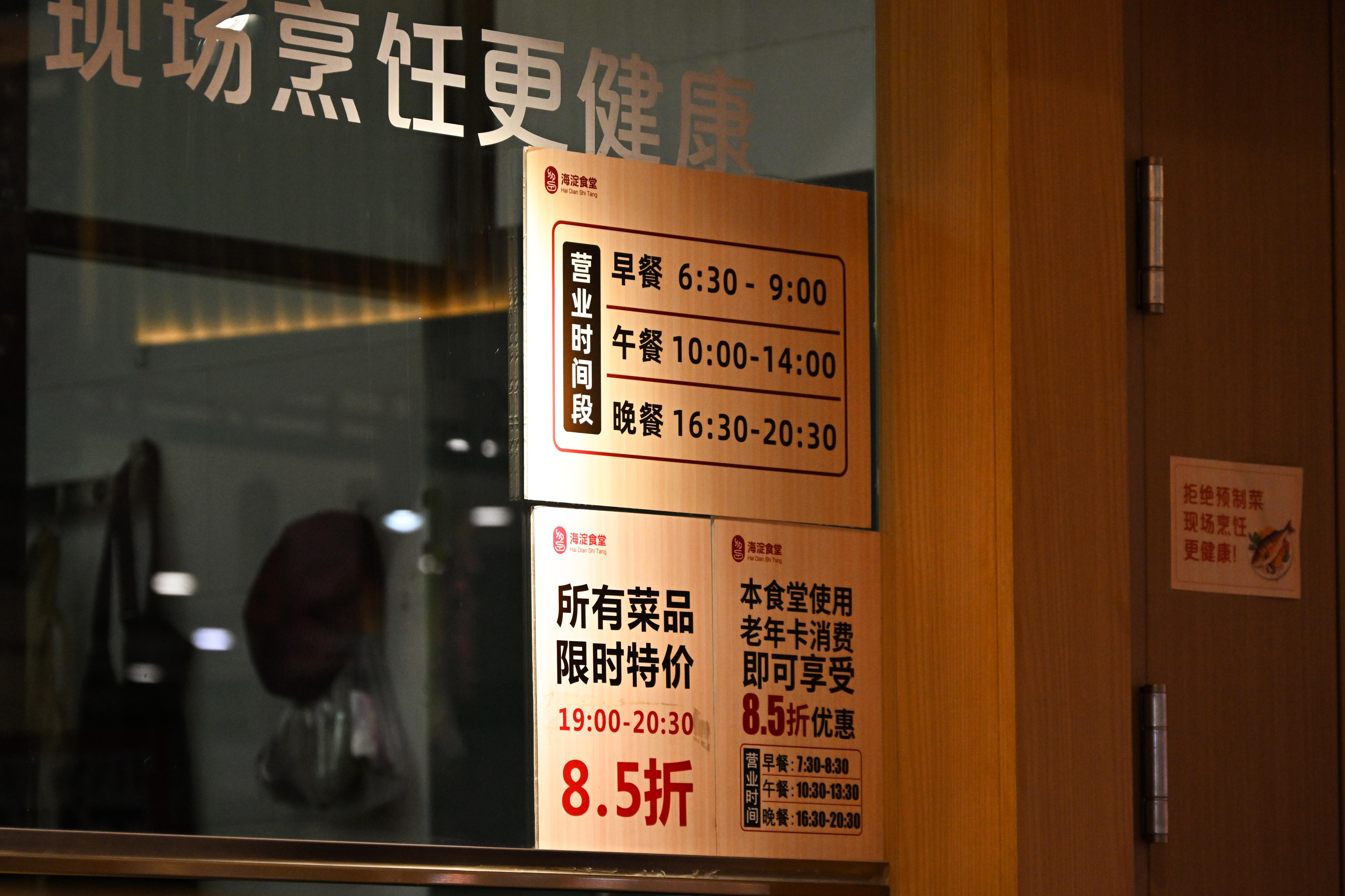 我们在附近胡同逛了会儿,便转场去往海淀玉泉路附近。晚餐打卡的是海淀食堂,去年九月新开,与前两家扎根老社区、服务老年人为主的不同,这一家开设在超市里,周边以办公楼为主。