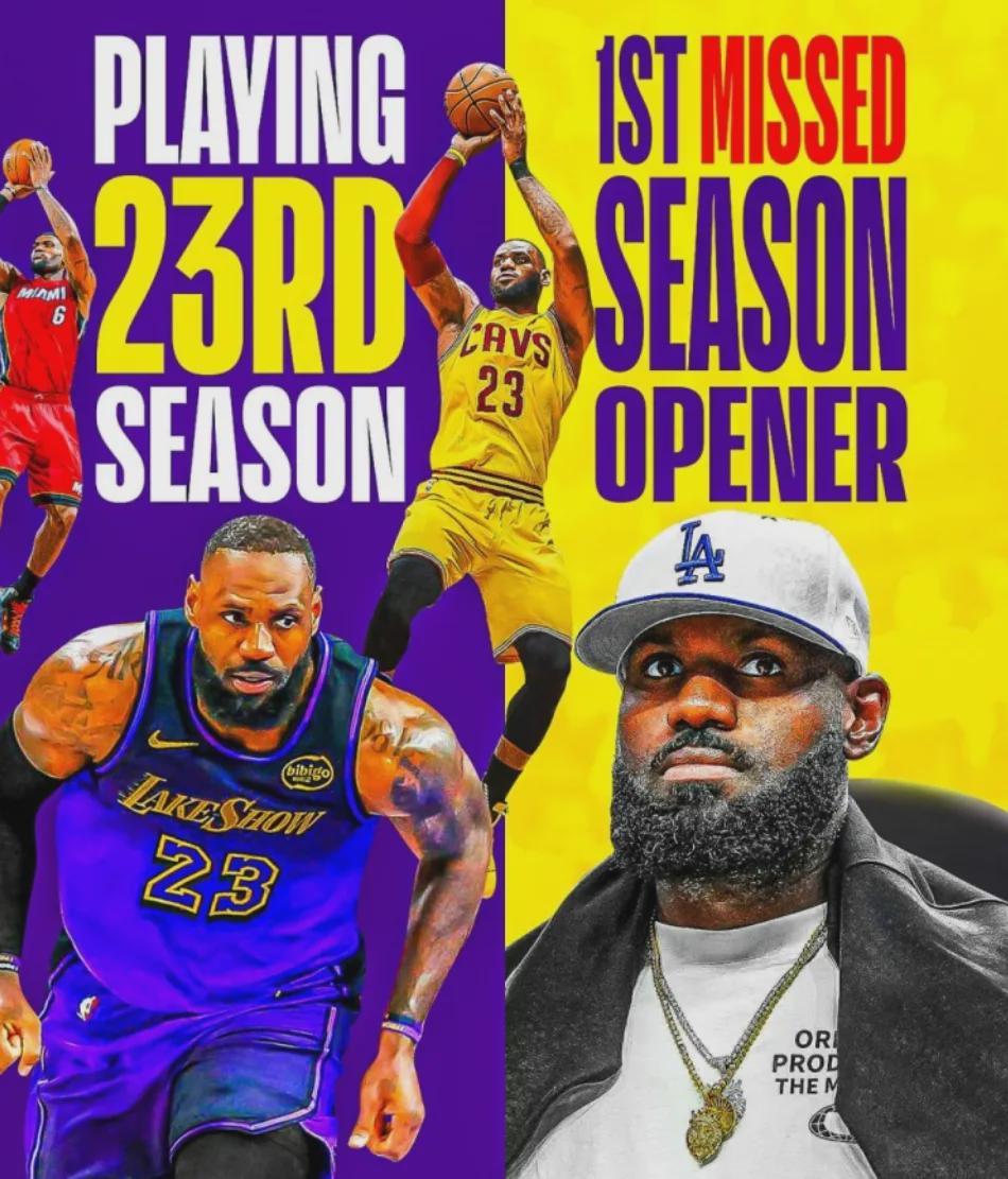 据统计,这是詹姆斯NBA生涯首次缺席常规赛揭幕战,此前他已经连续出战22次。