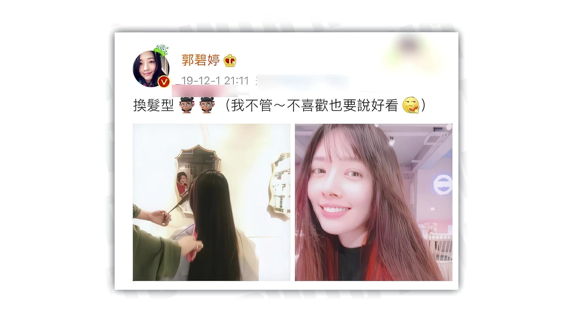 2019年冬天,回到台湾的郭碧婷染了头发,没多久向太就在下面留言,暗戳戳埋怨儿媳妇没征求自己同意就换发型。