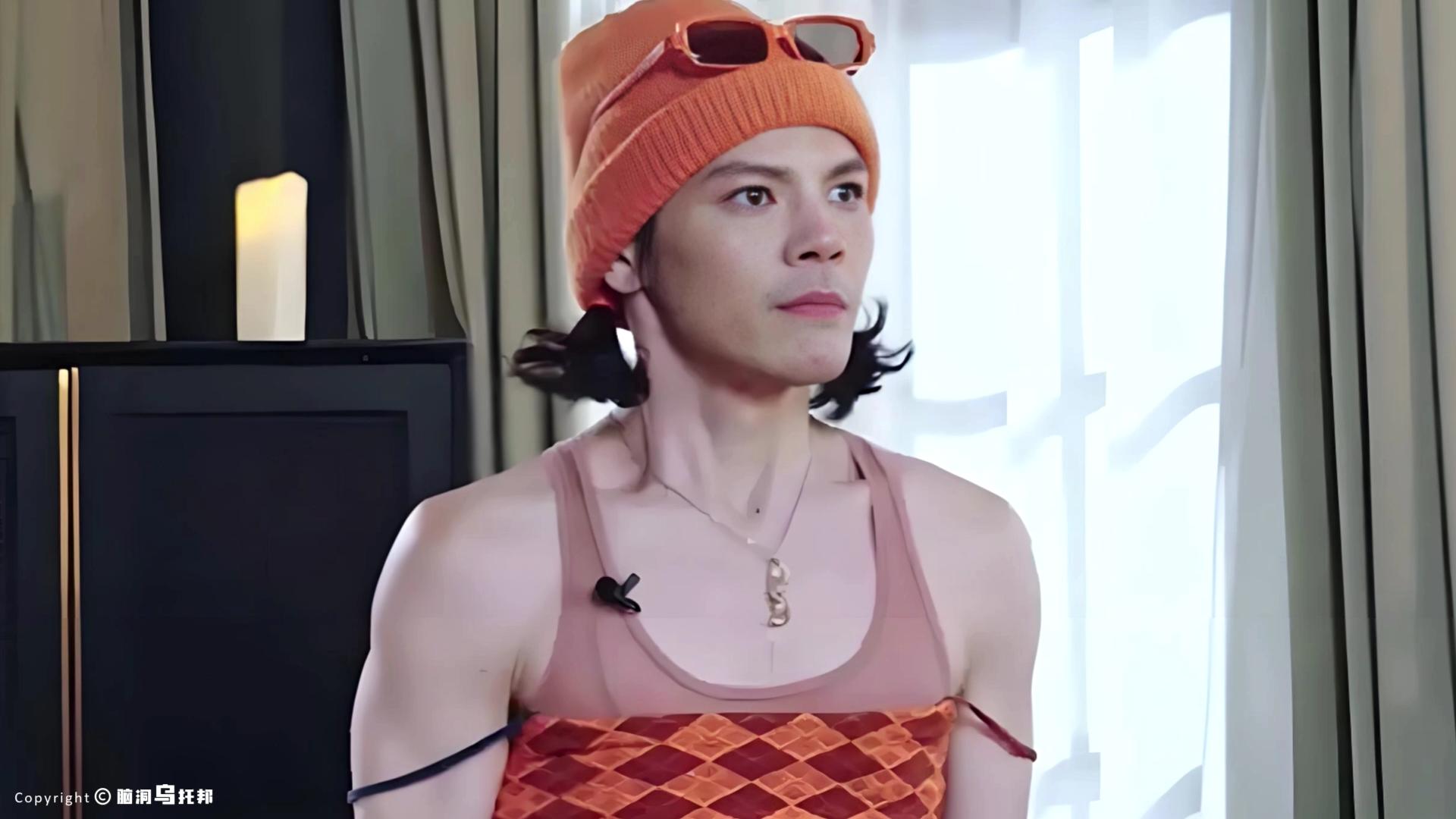 12月,以全新女装造型接受采访,粉色的背心搭配橘色抹胸,带子随意搭在肩膀以下,还扎了双马尾,多少有点不忍直视...