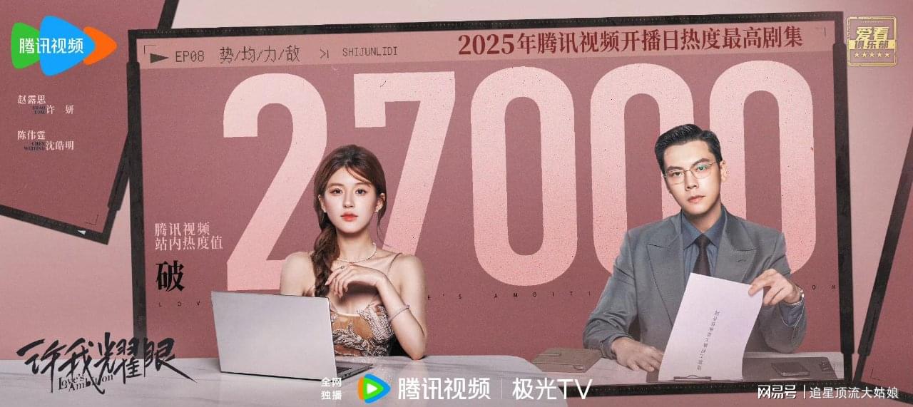 自2025年9月20日在腾讯视频开播首日热度值迅速突破24000,云合市占率达8.4%,登顶腾讯视频“拉新周榜”第一。抖音话题播放量破35亿。