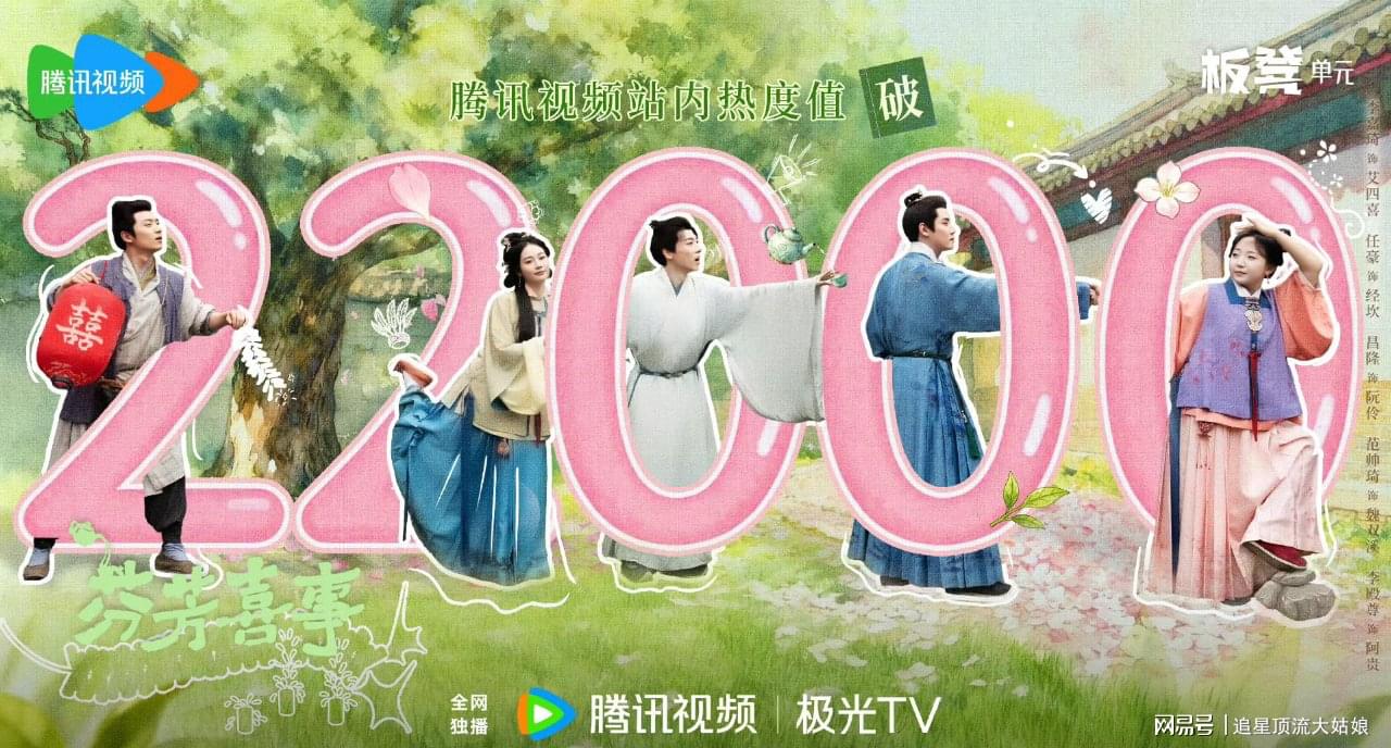 在无主演宣发的情况下开播2小时腾讯站内热度破22000,首日峰值达27000+,抖音相关话题45.2亿播放,TikTok海外播放超11亿。稳居腾讯站内榜首,热搜总榜第1名。