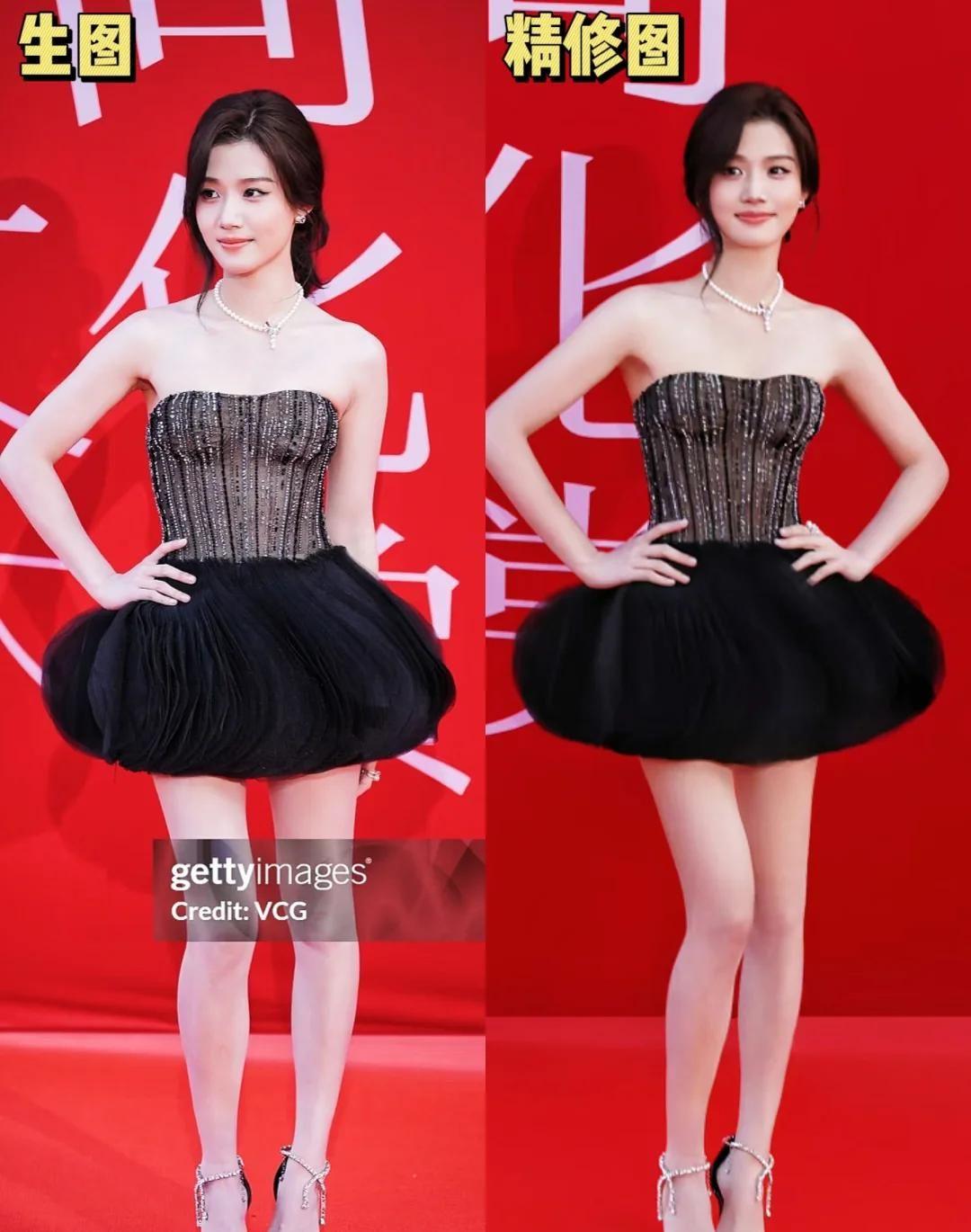 就像是在文化大赏中穿的黑色抹胸裙,腰身纤细,而且大长腿也出奇的长。