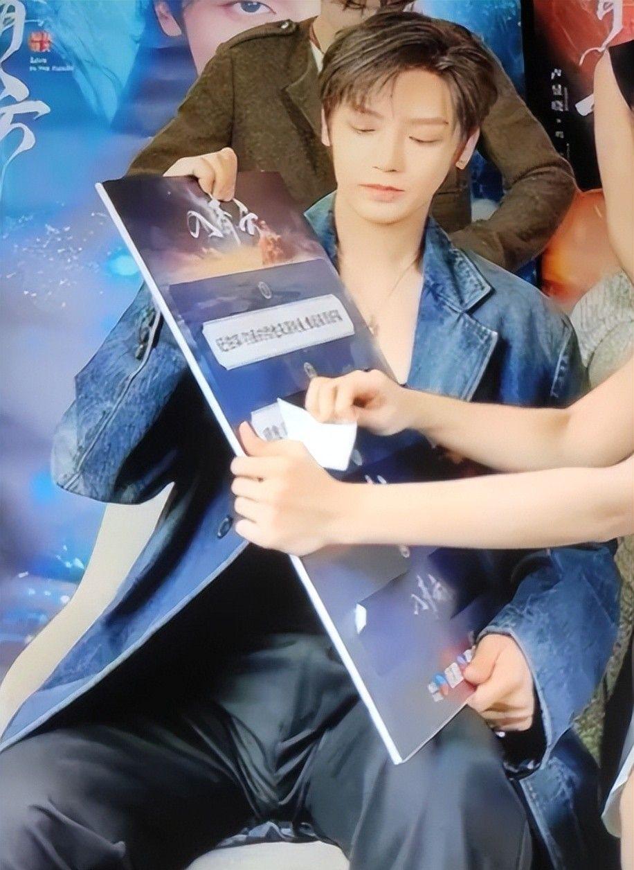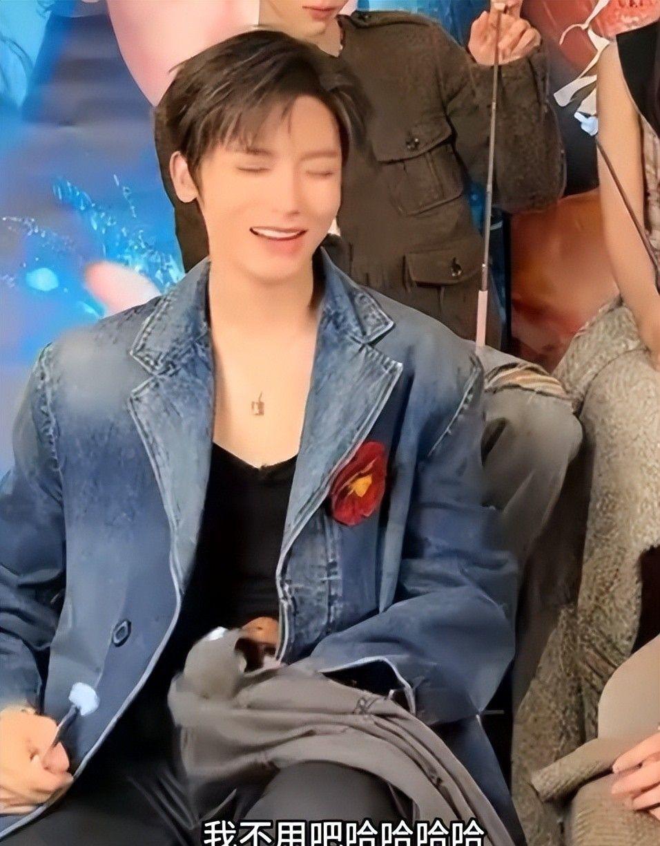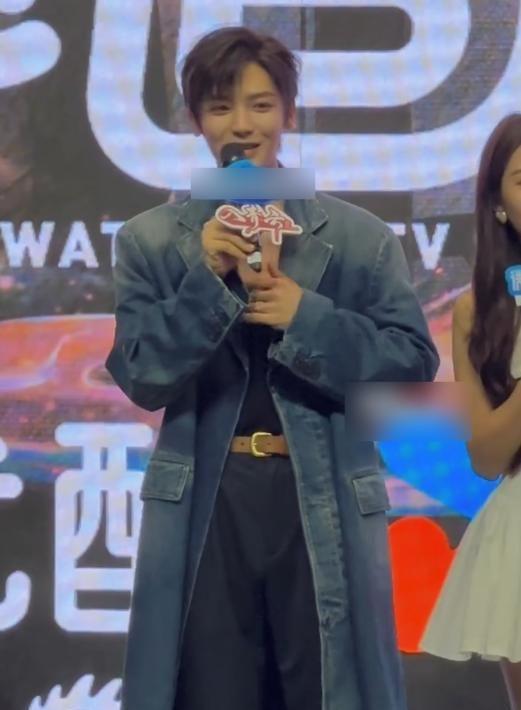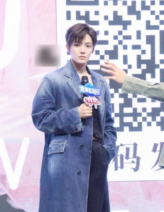当天穿了件深蓝色牛仔大衣,版型看着有点大,套在身上不贴肩,显得整个人瘦成皮包骨。