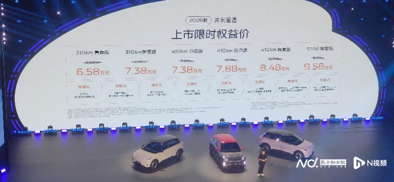 在吉利汽车一年一度的用户大会上,2026款吉利星愿正式上市。新车限时权益价从6.58万元到9.58万元,在延续高性价比的同时,通过多项升级,进一步巩固了其在A0级纯电市场的强大竞争力。