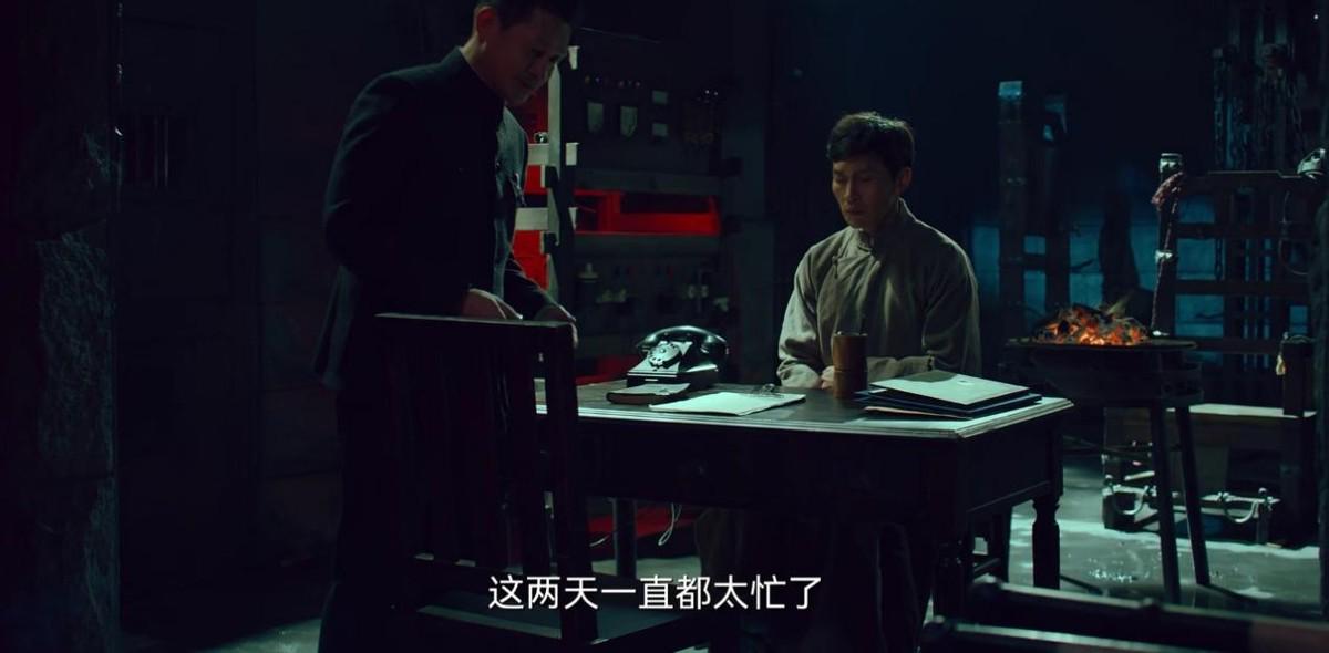 整场戏下来,曹磊的语气都是淡淡的,并不是靠台词来完成人物的塑造,而是用了大量的眼神戏和神情变化,通过细节演出地下工作者对正义和信仰的坚守。