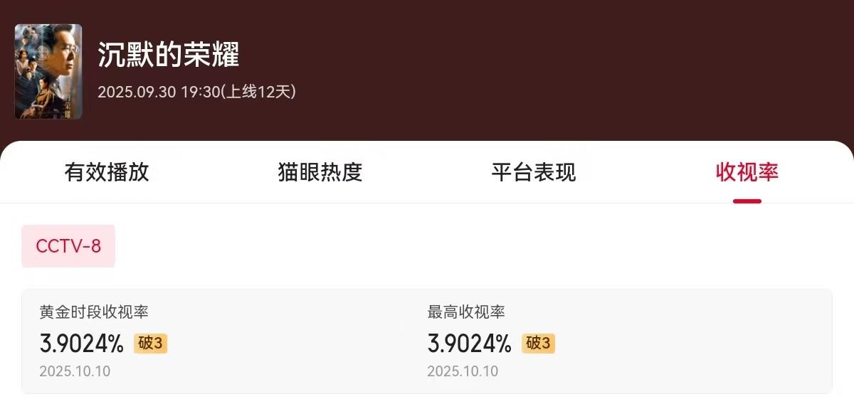 《沉默的荣耀》收视即将破4,已经有追赶《生万物》的势头了。