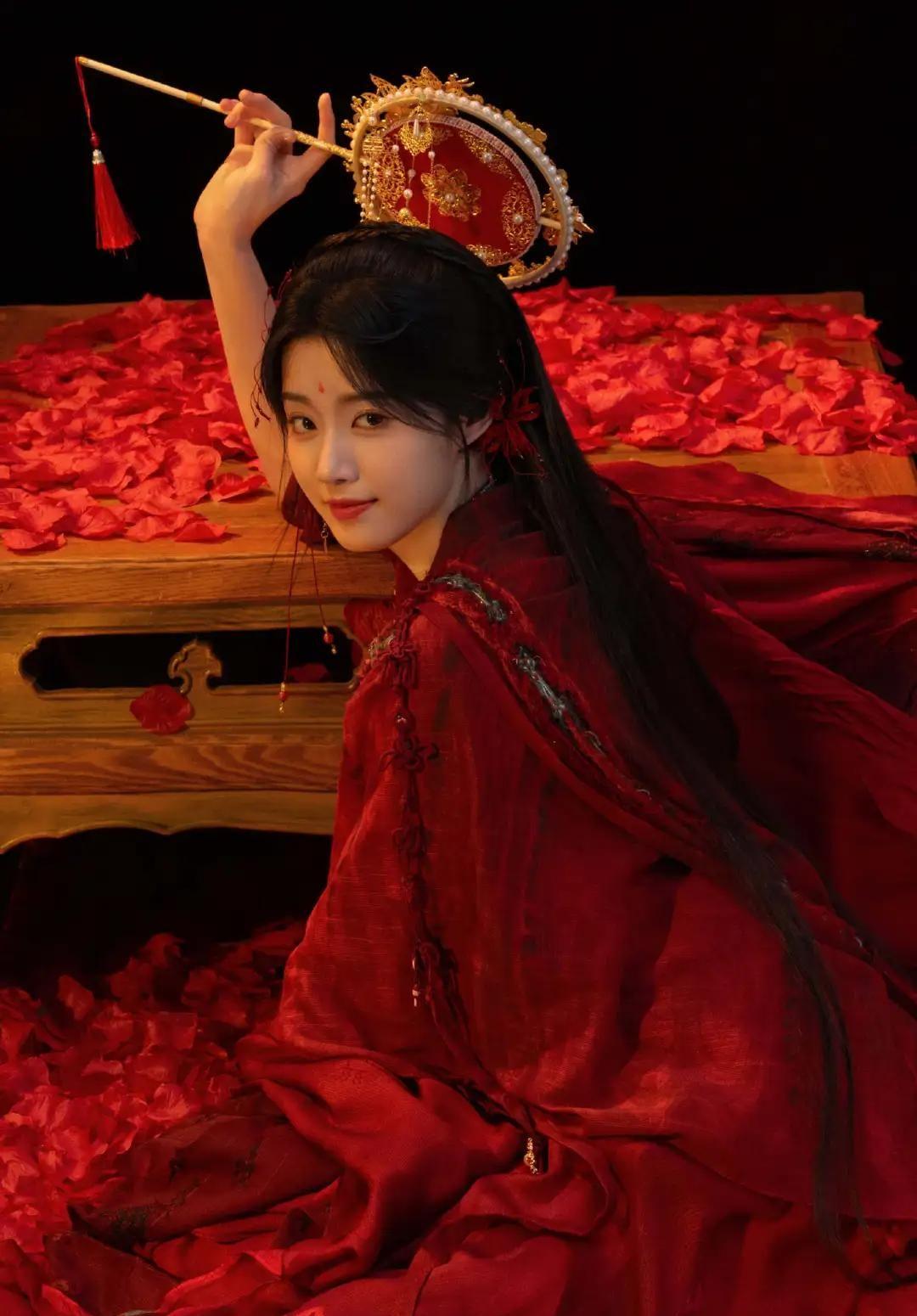 一身红衣策马而来,英气逼人,瞬间将人拉回当年她饰演黑化淳儿时的经典画面,令人久久难忘。