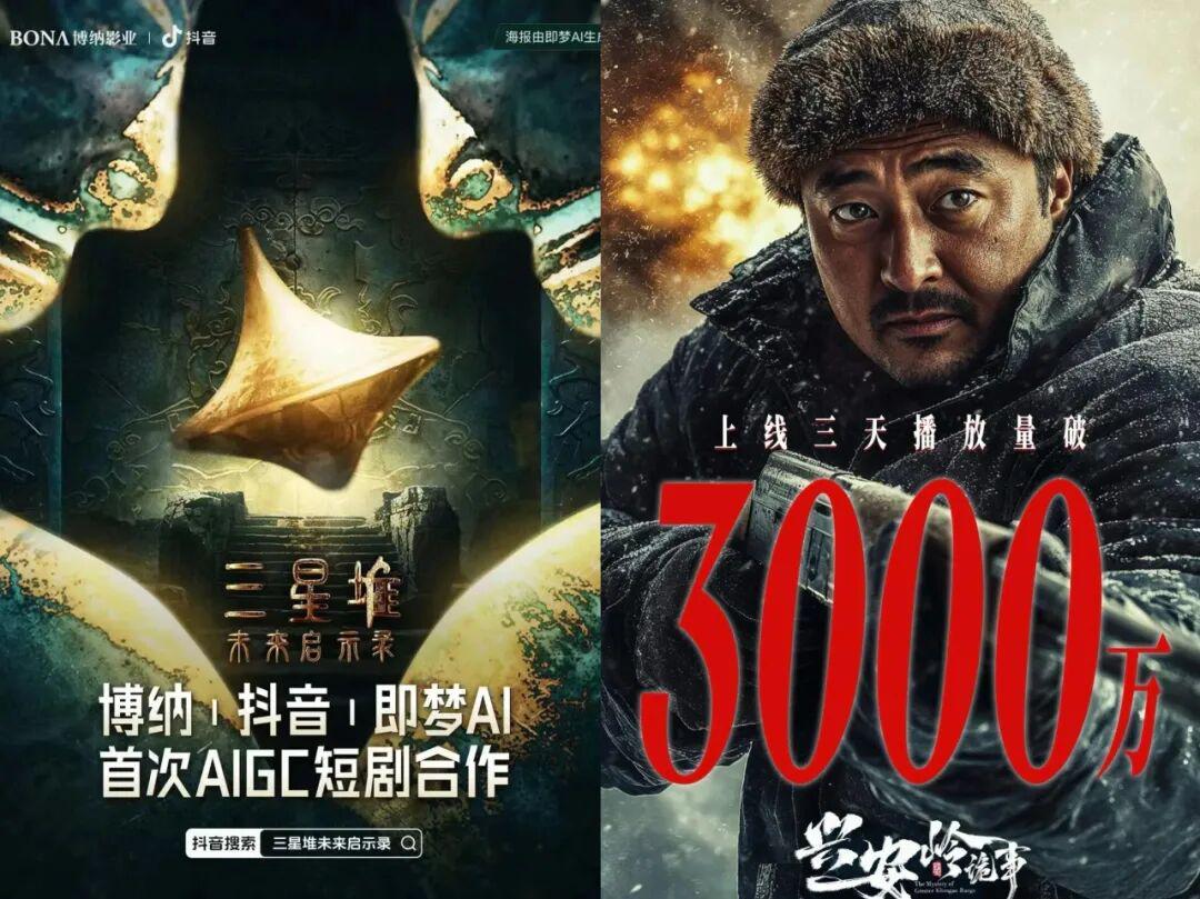 博纳影业则是在AI短剧上占据了先发优势,早在2024年就推出了《三星堆:未来启示录》,这是国内首部纯AIGC生成式连续性叙事剧集,通过科幻叙事展现三星堆文物瑰宝的艺术魅力,第一季全端传播总量超1.6亿次。此外风芒传媒今年也推出了首部AI付费奇幻探险短剧《兴安岭诡事》,上线一个月全网播放量破1亿,且付费转化率显著。