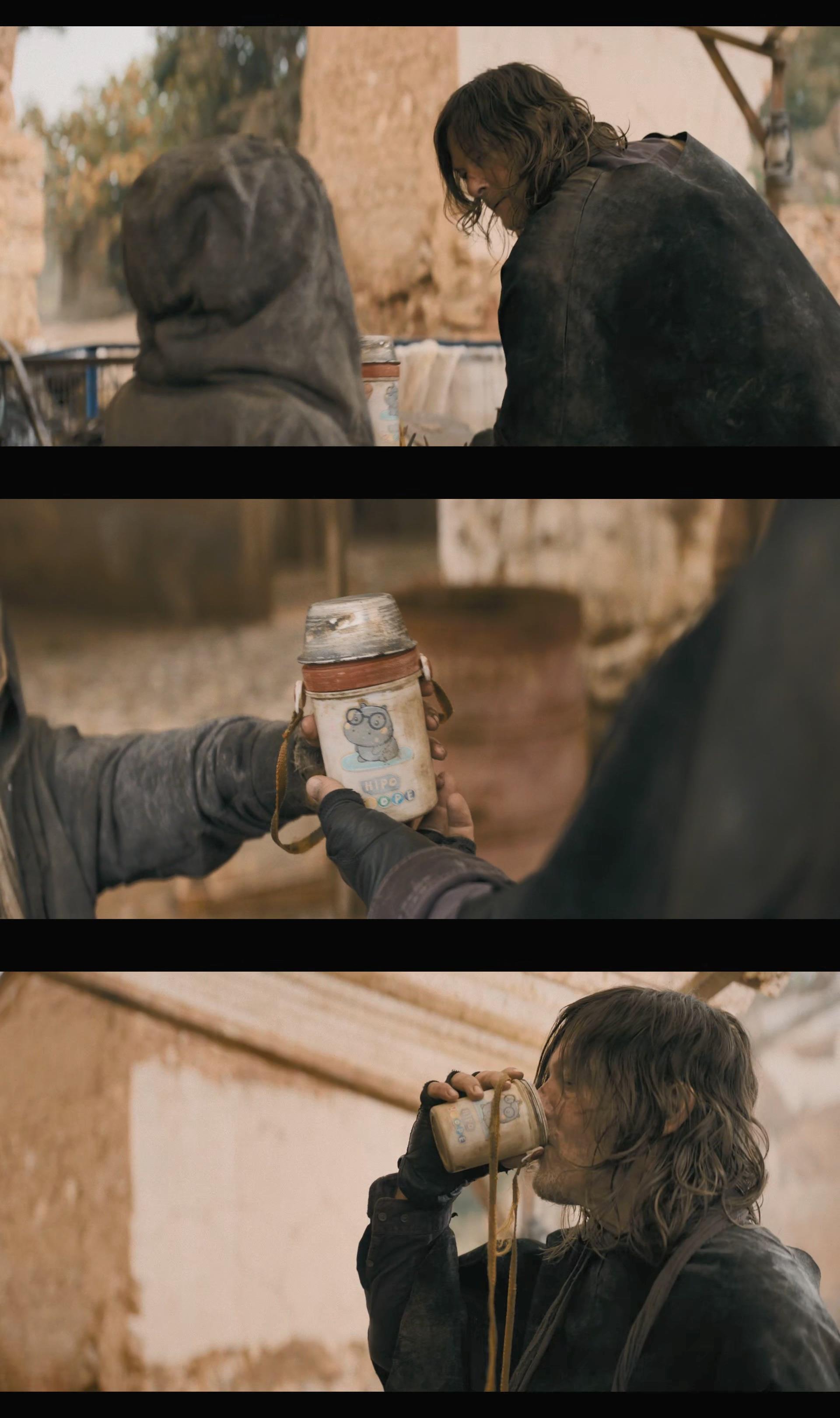 这还没完,达里尔答应帮忙后,也需要村民们一起出力,小女孩罗莎还非常到位地向英雄叔叔递出了自己的水杯,让他喝所剩无几的宝贵饮用水。